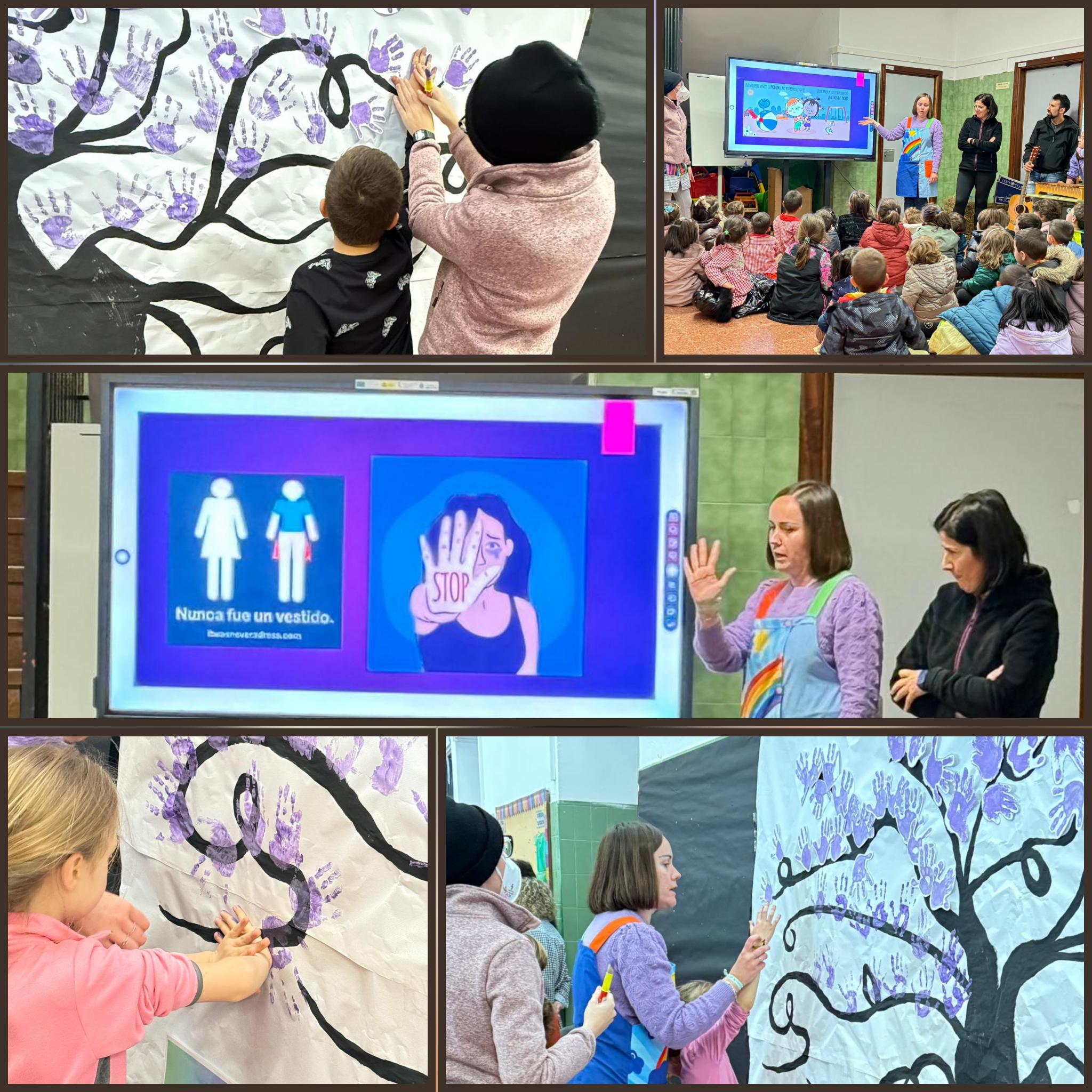 Este año, todo el colegio ha trabajado el Día Internacional de la Eliminación de la Violencia contra la Mujer a través del cuento “Yo voy conmigo”, una historia que nos invita a querernos tal y como somos y a respetar la identidad de cada persona.