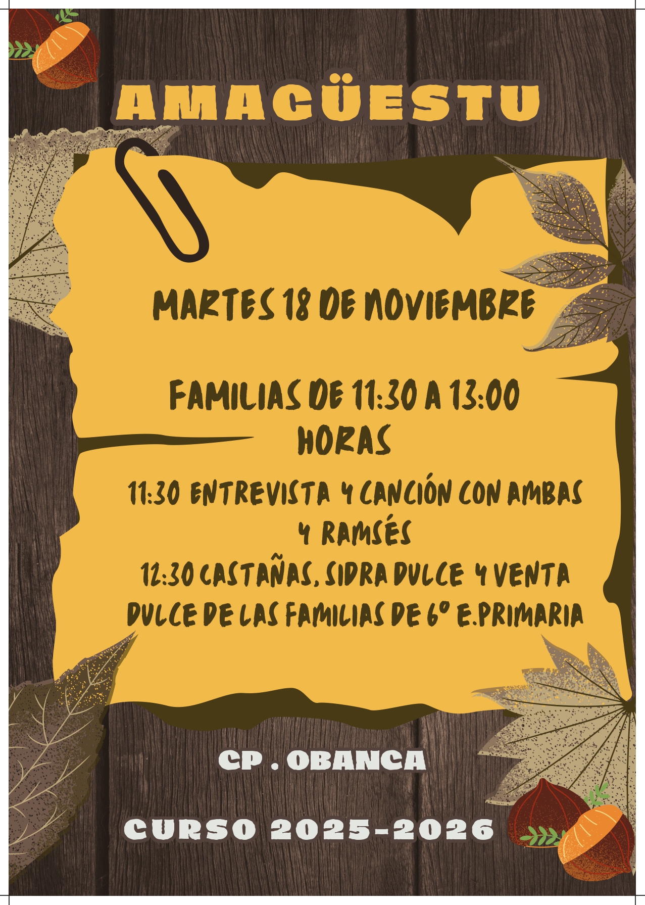 Pa zarrar la xornada, compartimos una convivencia coles families, degustando castañes y sidra duce ( colaboración del AMPA ).Foi un momentu entrañable d’unión y celebración.