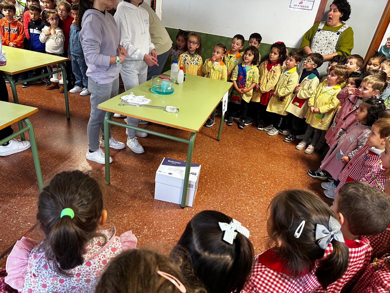 Nuestro colegio se llenó de ciencia, sorpresa y aprendizaje gracias a la visita del alumnado del Instituto, que preparó una auténtica feria de experimentos científicos para los más pequeños. A través de reacciones químicas, mezclas sorprendentes y demostraciones llenas de color, lograron despertar la curiosidad y el asombro de todos los presentes.