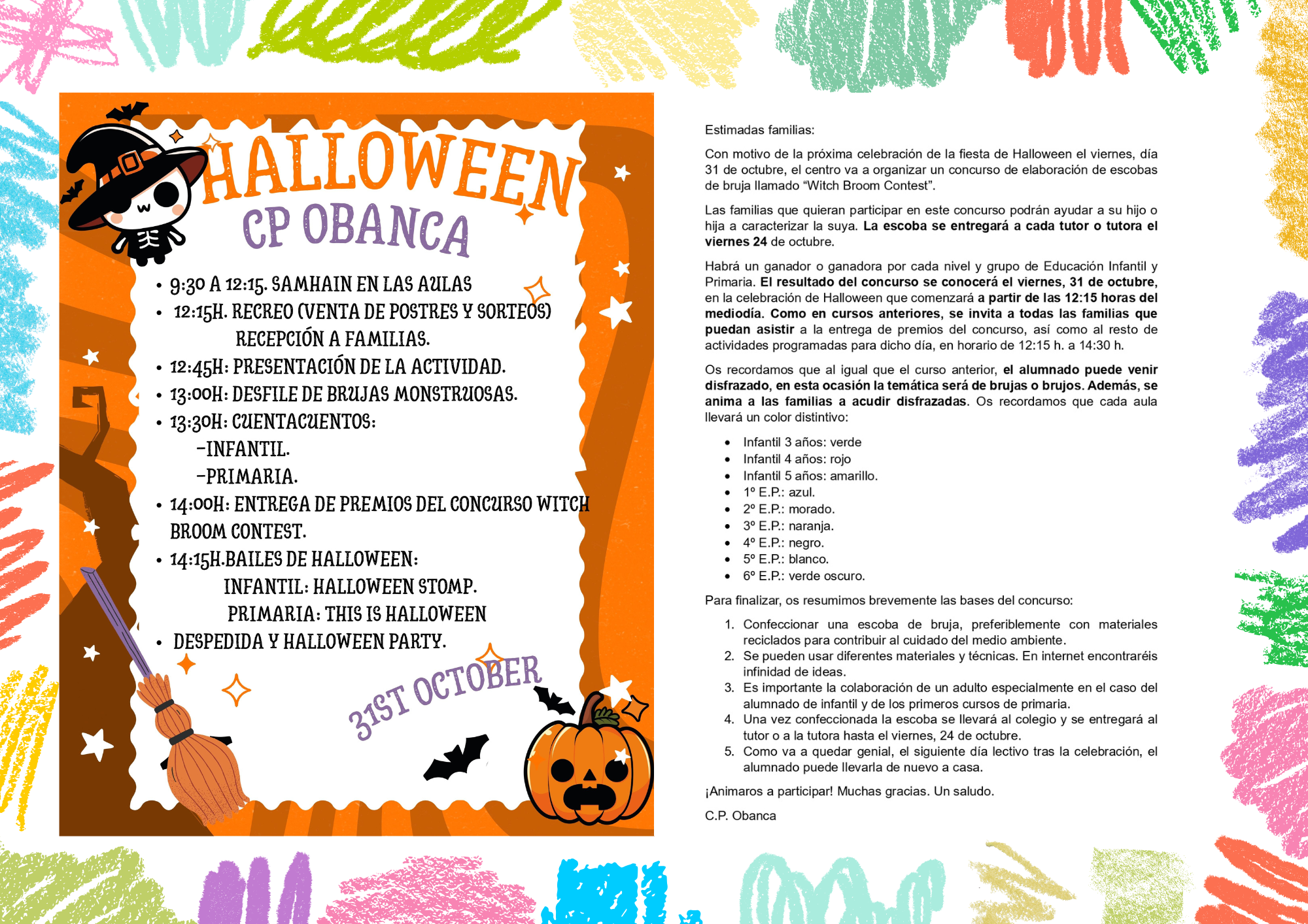 El viernes 30 de octubre, a las 09:30 de la mañana, nuestro centro se llenó de pequeños fantasmas, brujas y brujos, momias, esqueletos, vampiros... y un sinfín de personajes terroríficos más. Y es que, aunque este curso está siendo un poco raro para todas y todos, en el Colegio Público de Obanca no quisimos dejar de celebrar la festividad de Halloween.
