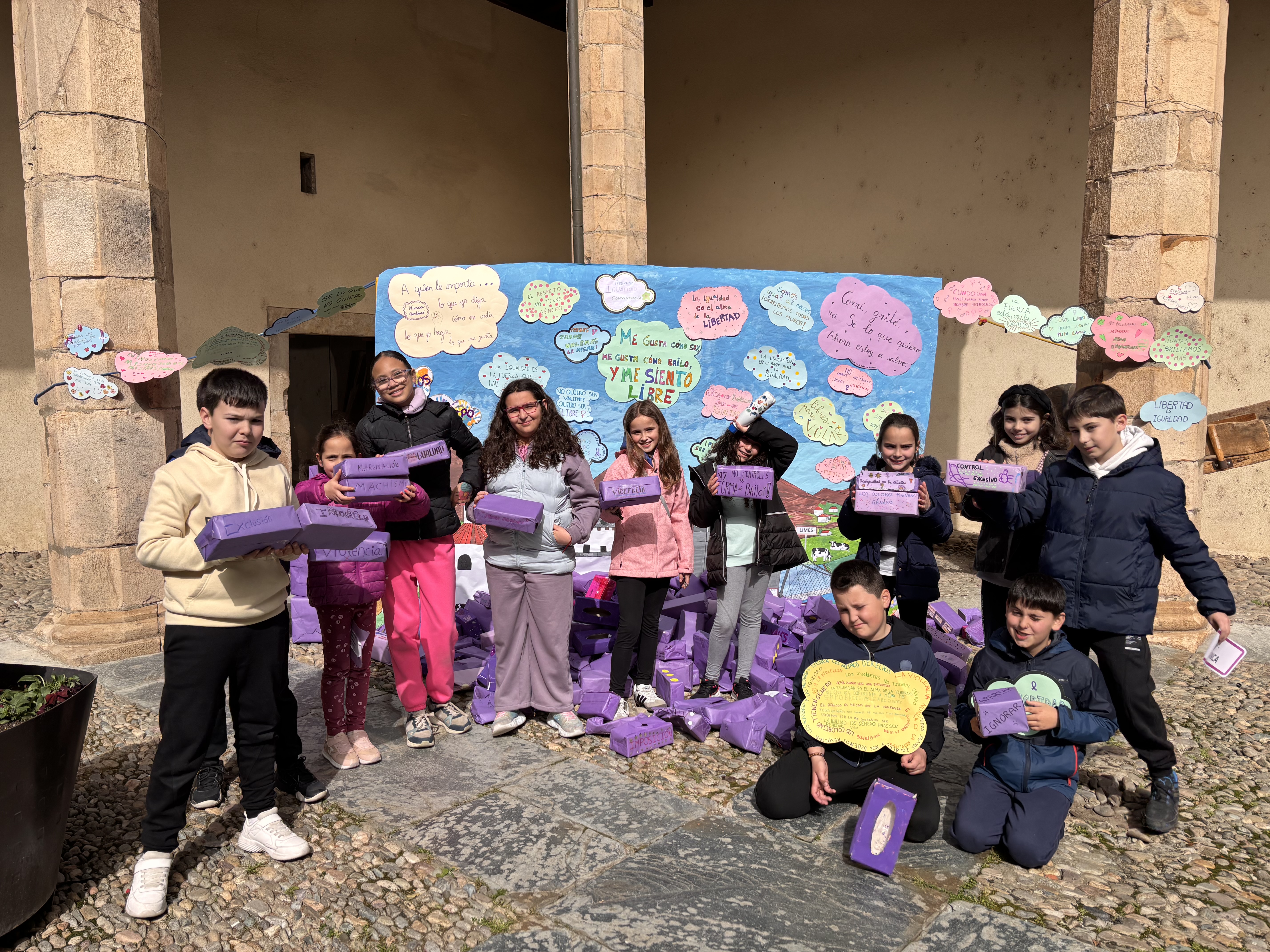 Durante el acto, los escolares derribaron simbólicamente un “muro de la desigualdad” construido con cajas de cartón en las que previamente habían escrito palabras y frases que reflejan situaciones de machismo o injusticia. Al caer el muro, aparecieron mensajes positivos que reivindican la igualdad y el respeto.