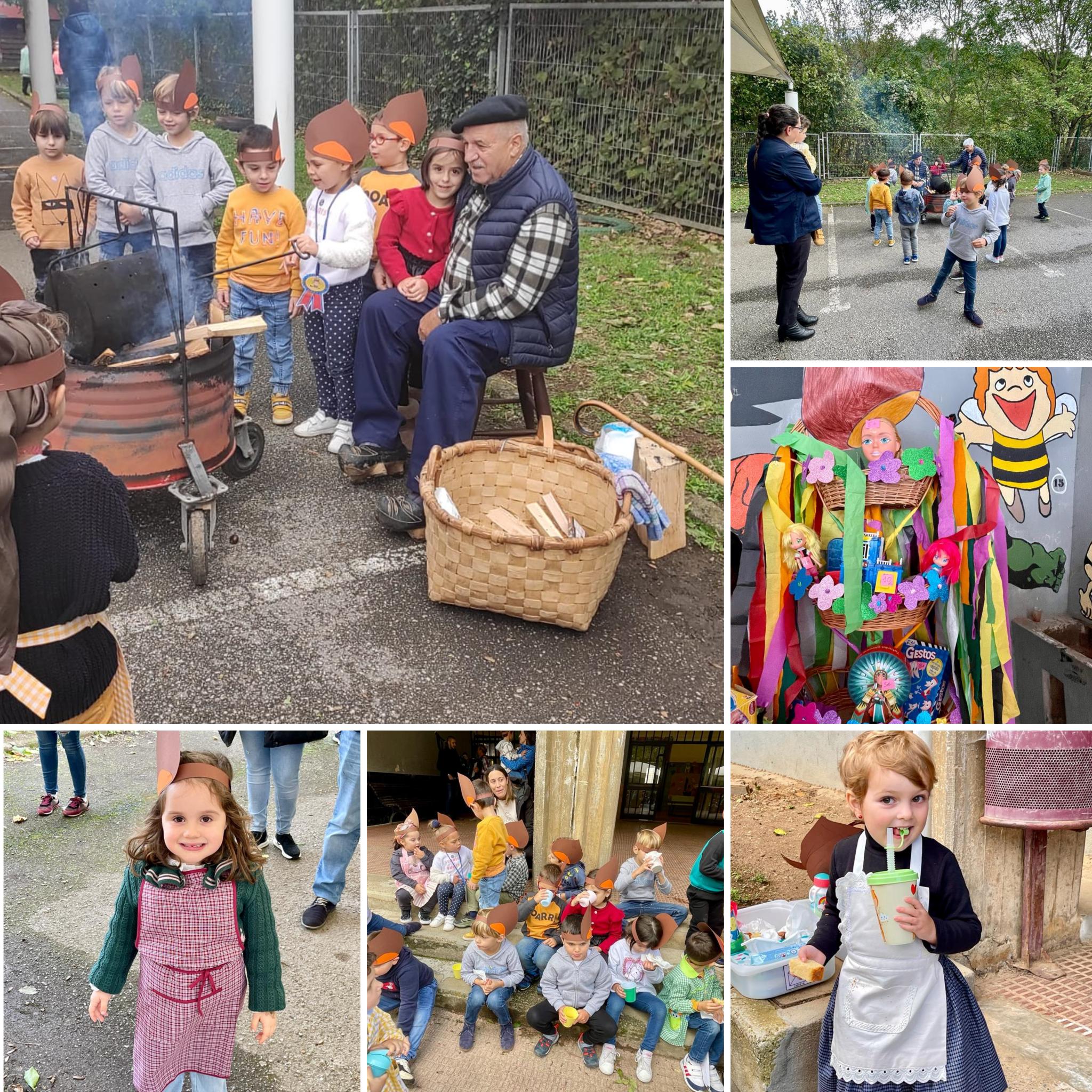 El pasáu día celebramos nel colexu una xornada mui especial de Magostu, llena d’actividaes que nos acercaron a les nueses raíces y a la cultura asturiana. La mañana entamó colos talleres de mayáu de sidra, organizaos pol AMPA xunto con Juan Ramón, acompañaos de danza, decoración de panderos, exhibición del traxe asturianu a cargu del grupu Perendengue y práctica del toque del pandero. Dempués, Ambás y Ransés fixéronnos disfrutar con cuentos, cantares y pandeiru, llenando d’alegría a pequeños y mayores. Todos cantamos, bailamos y tocamos xuntos.