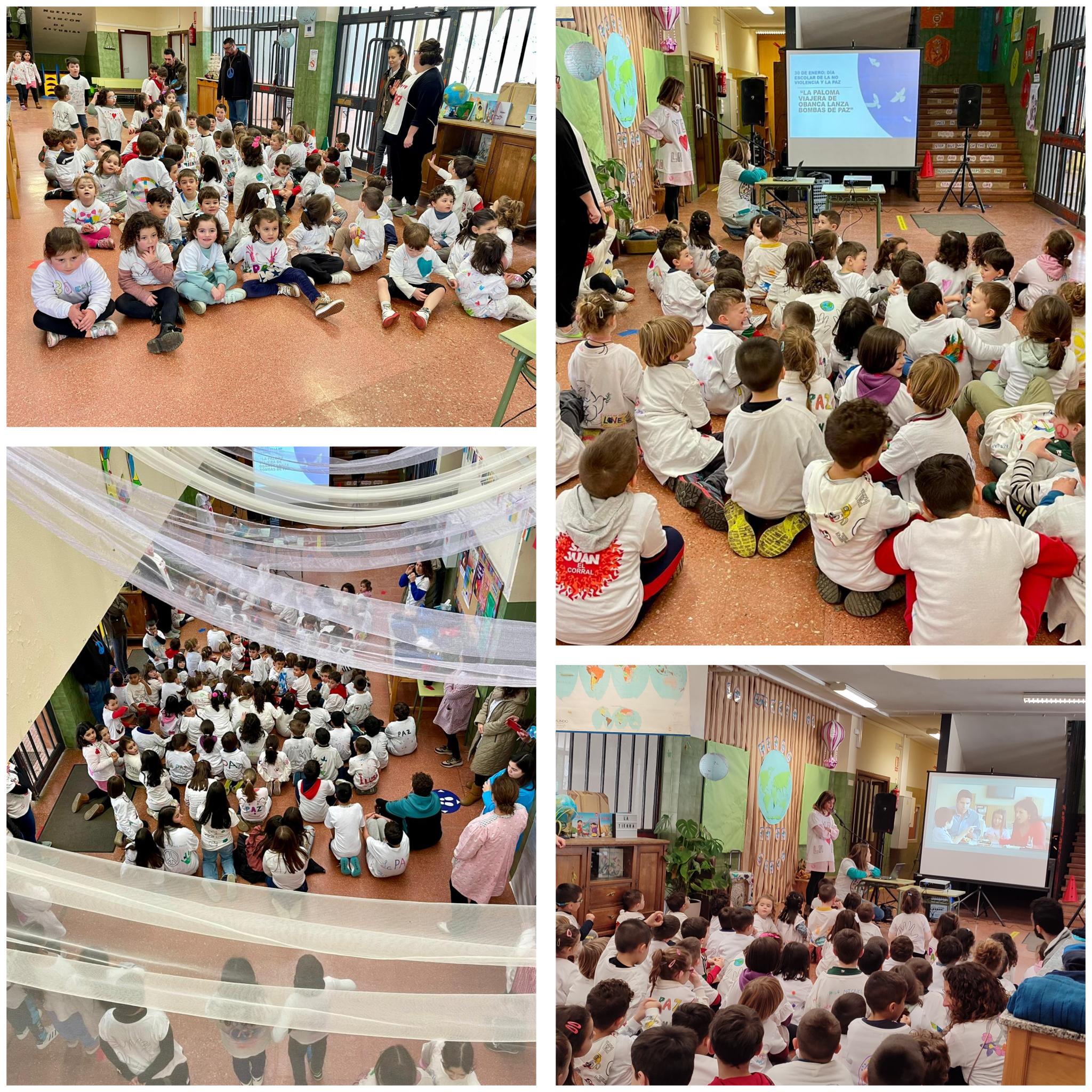 Hoy hemos trabajado la importancia de vivir en un mundo en paz, como un derecho de la infancia y de toda la humanidad. Para lograr la paz tenemos que aprender a evitar la violencia y comprometernos con formas pacíficas de resolución de conflictos en nuestro día a día, lo que incluye una apuesta educativa por la no-violencia en nuestro centro educativo.