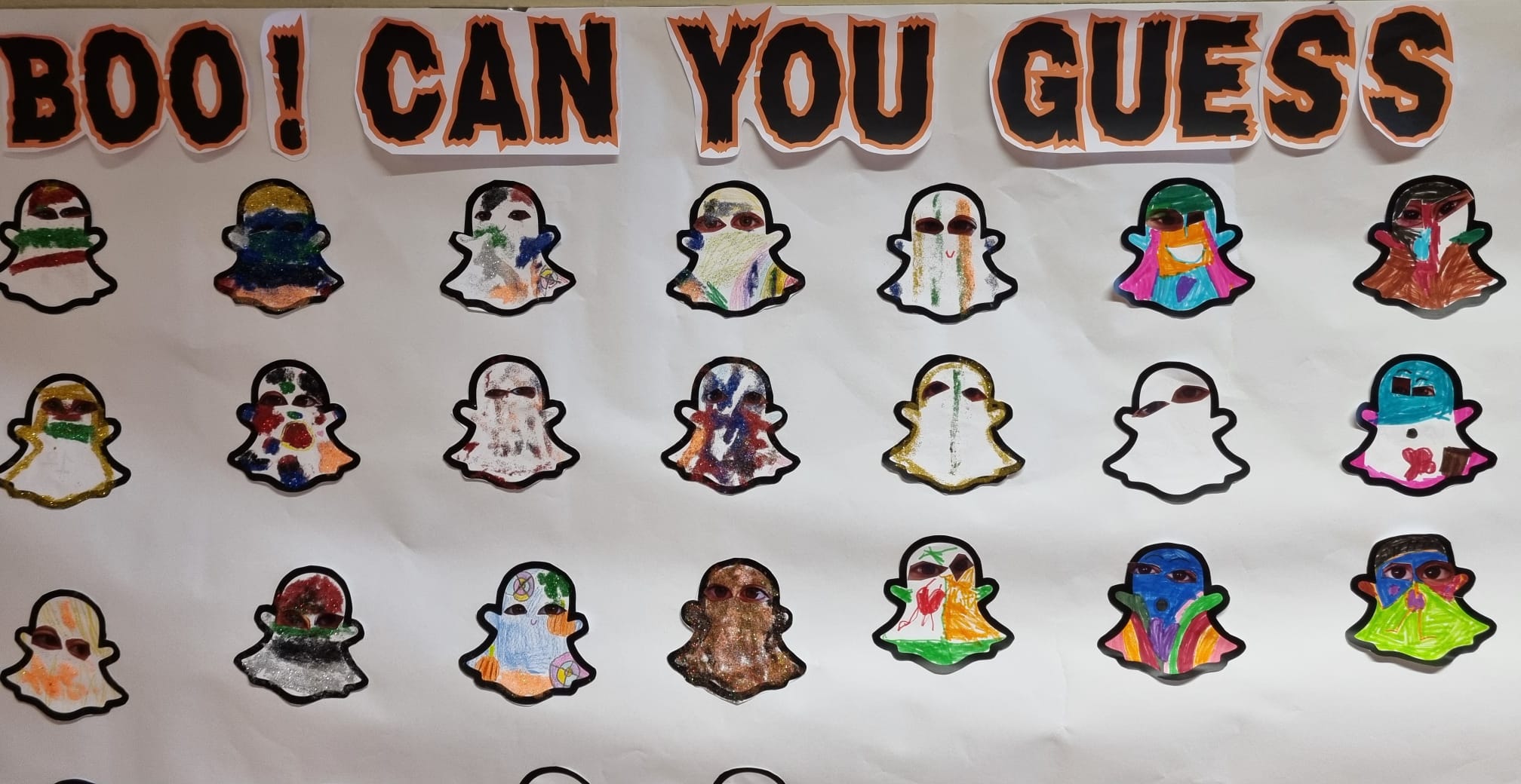 - Lunes: en el recreo, el alumnado decoró unos fantasmas a los que les pusieron sus ojos.