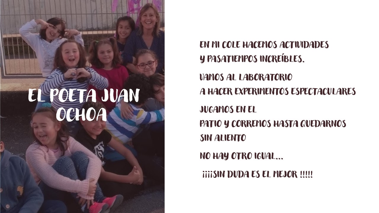 Ellos y ellas son los protagonistas, los que cada día aprenden y disfrutan en su cole, Y ellos y ellas son los que te cuentan lo que mas valoran de su cole.