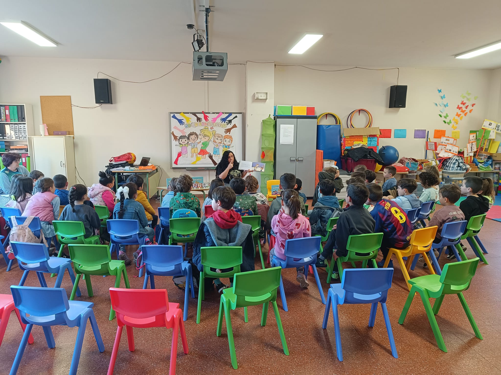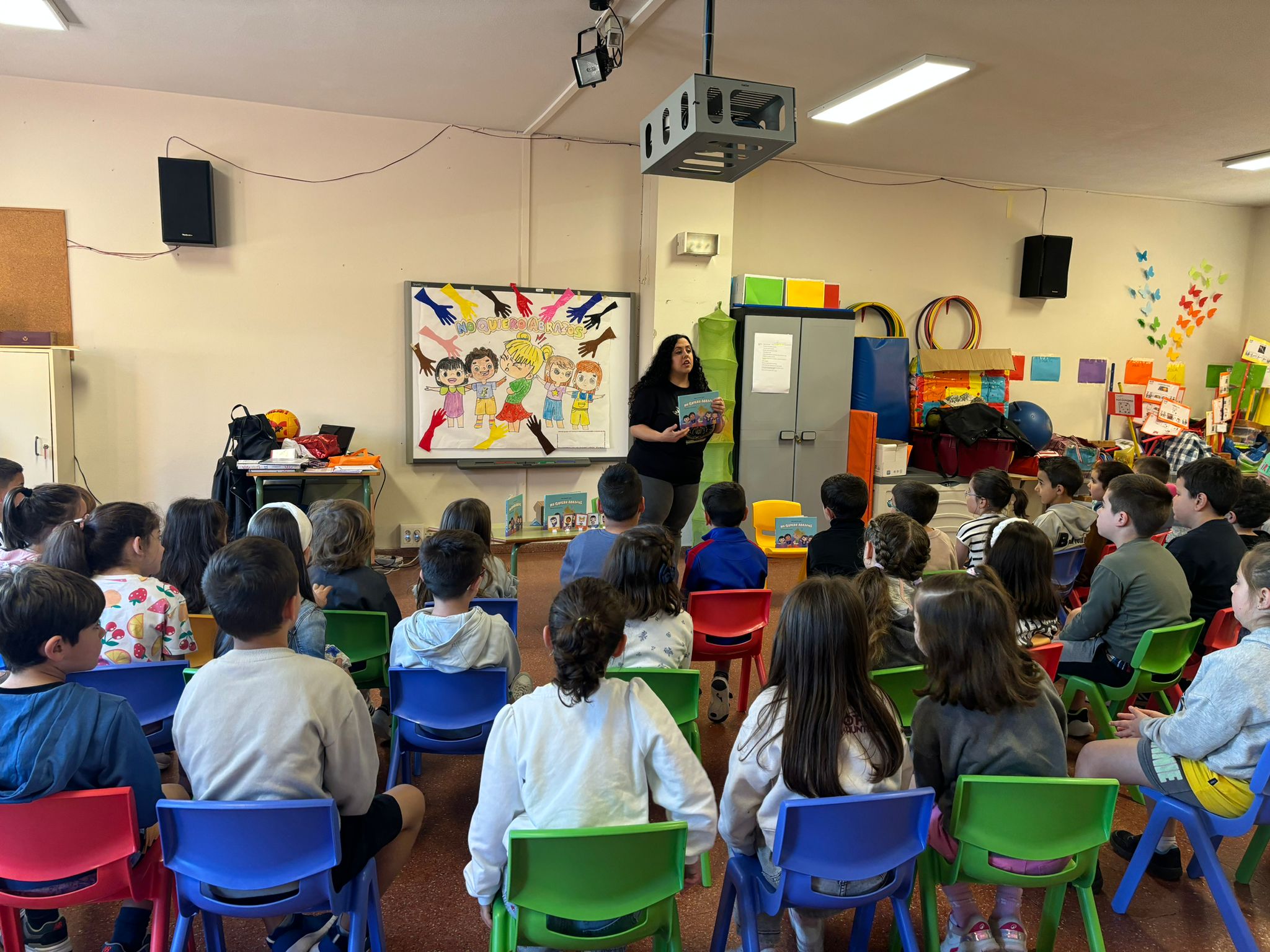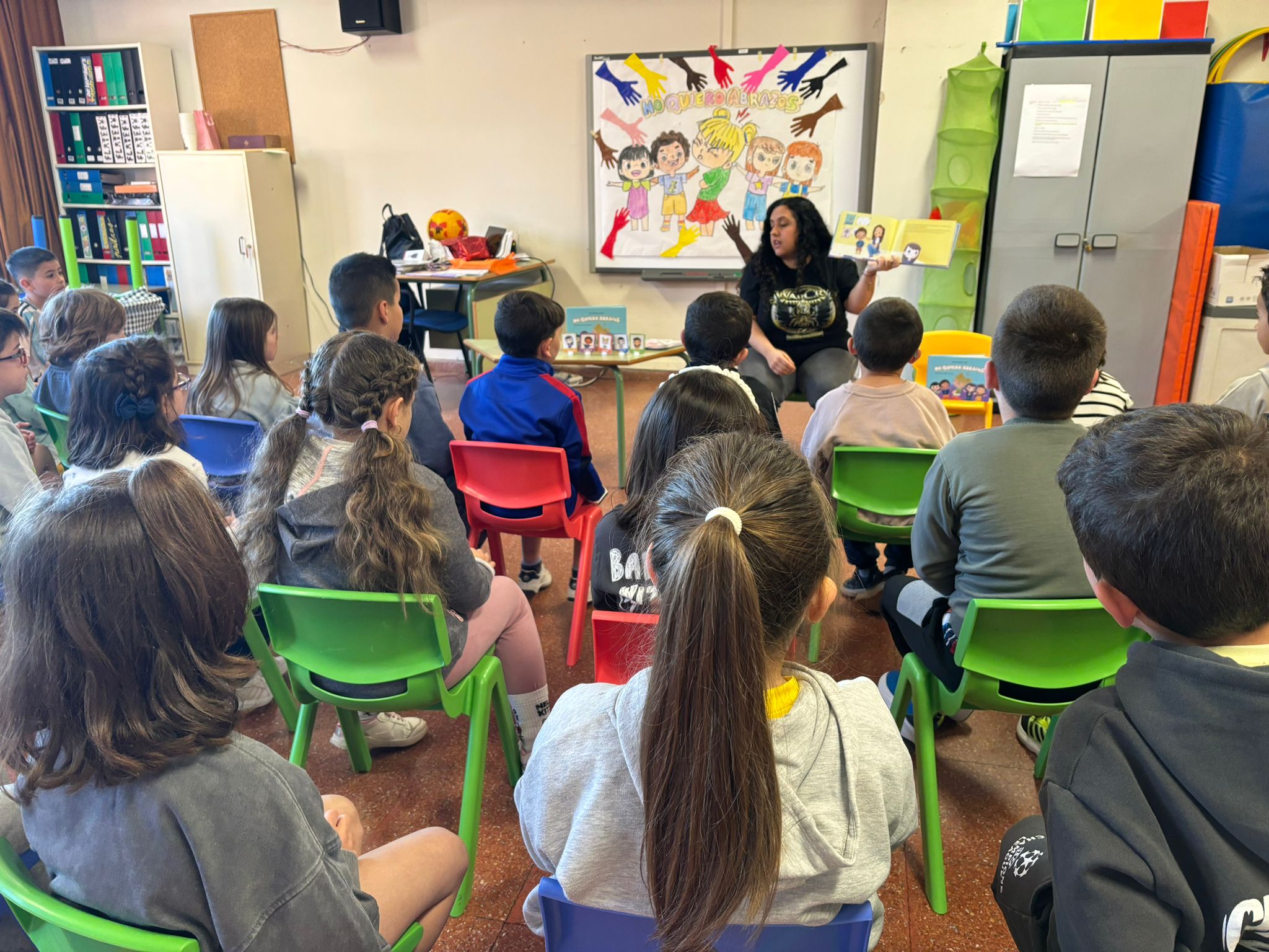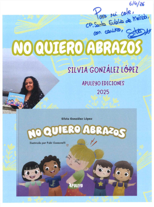 Hoy ha venido SILVIA GONZÁLEZ LÓPEZ, antigua alumna del cole, y madre de dos exalumnas, a realizar un CUENTACUENTOS de su libro "NO QUIERO ABRAZOS" para el alumnado de infantil y 1º ciclo. "NO QUIERO ABRAZOS" es una preciosa historia que trata sobre aprender a respetar las diferencias y a expresar cariño de diversas formas. Una historia tierna y educativa, que enseña a respetar los límites de otras personas y a valorar la diversidad desde el consentimiento, el diálogo, el entendimiento mutuo y la convivencia respetuosa. AGRADECEMOS MUCHO A SILVIA SU VISITA.