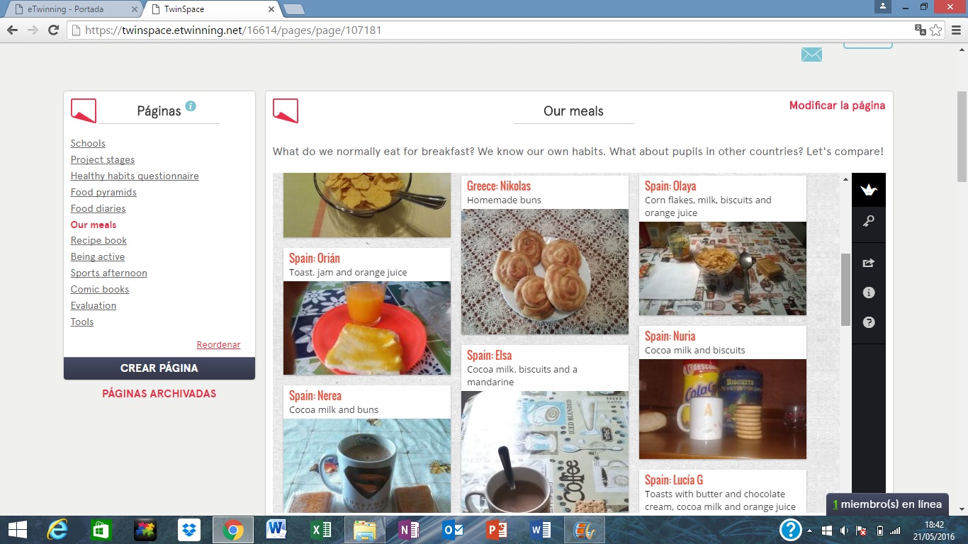 Y en el muro de Padlet vamos colgando las fotos de nuestros desayunos, comidas, meriendas y cenas y vemos las de nuestros compañeros europeos. ¡Es comida muy diferente!