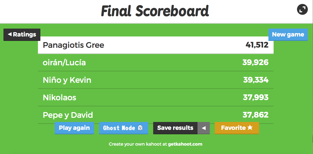 Mediante una videoconferencia participamos en un concurso con Kahoot para comprobar cuánto habíamos aprendido sobre los 5 países de nuestro proyecto. Divertidísimo!!