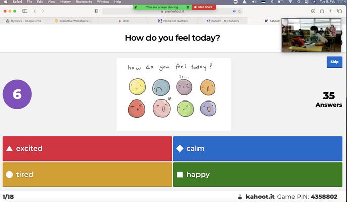 Jugamos al Pictionary online compartiendo las pantallas para dibujar y escribir mientras hablábamos en inglés con ellos por videollamadas.