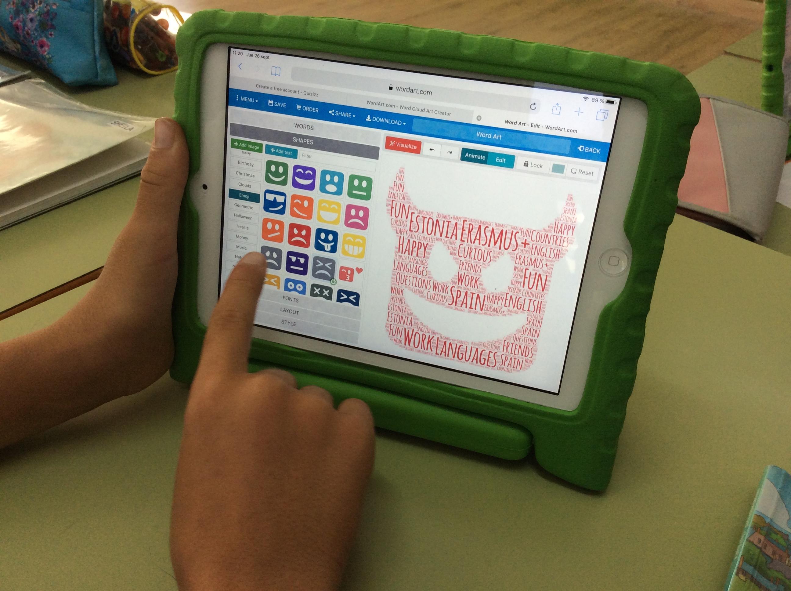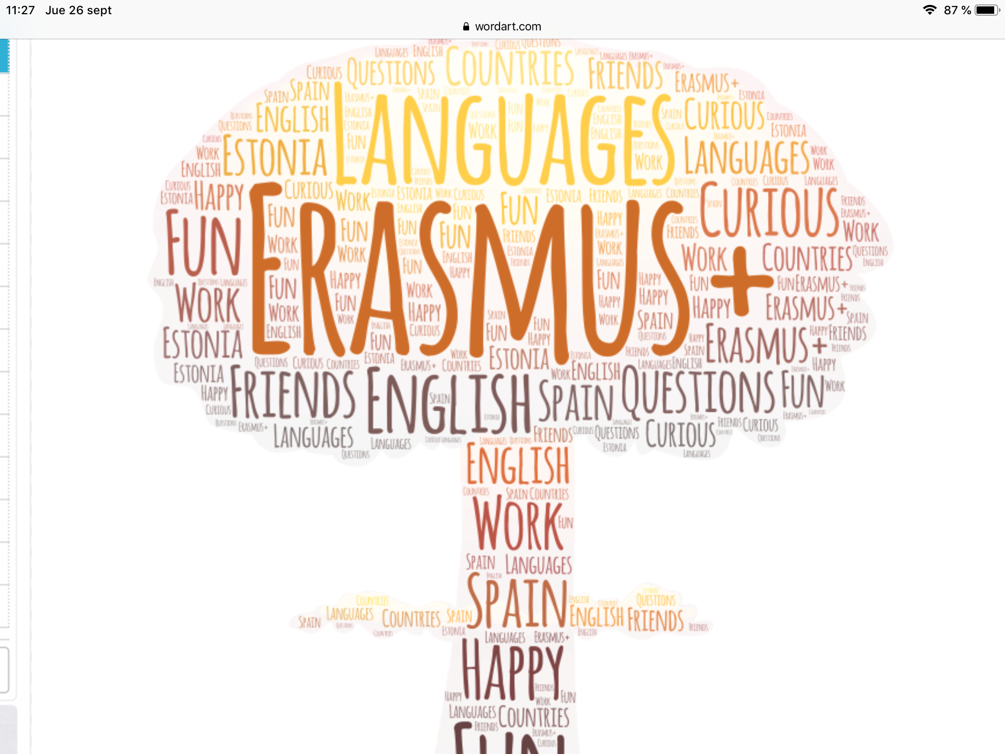 Para celebrar el Día Europeo de la Lenguas hablamos con nuestros compañeros de Estonia a través de una videollamada e hicimos estos carteles usando la app Word Art Cloud Creator.