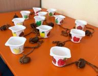 Primero elaboramos un juego con vasitos de deshecho con el que practicamos nuestra puntería.