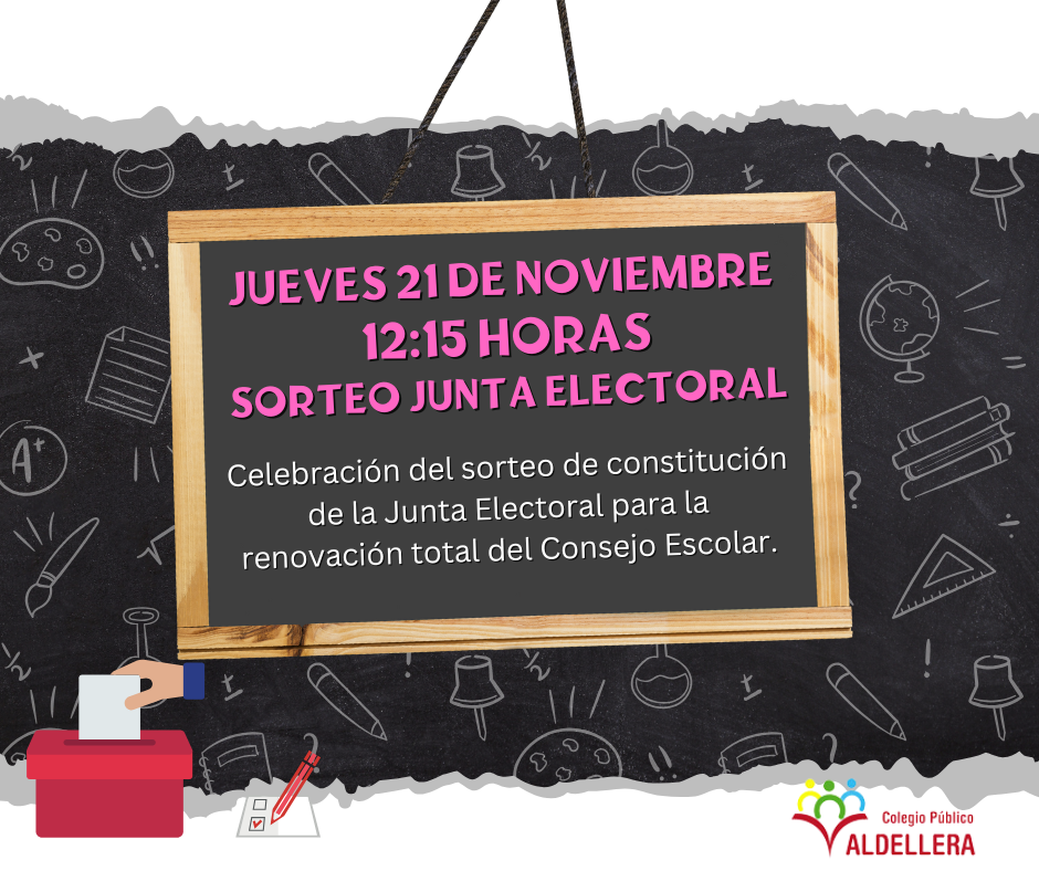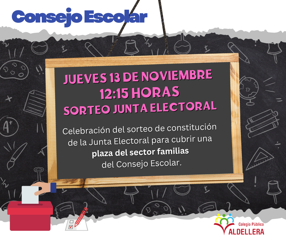 El próximo jueves 13 de noviembre a las 12:15 horas se realizará el sorteo público para la constitución de la Junta Electoral en la sala de profesorado de Educación Primaria del CP Valdellera.