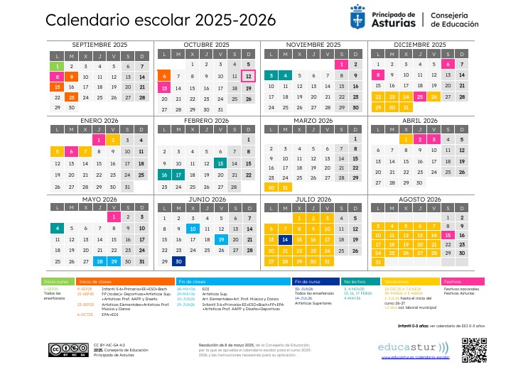 Más información en CALENDARIO ESCOLAR - EDUCASTUR