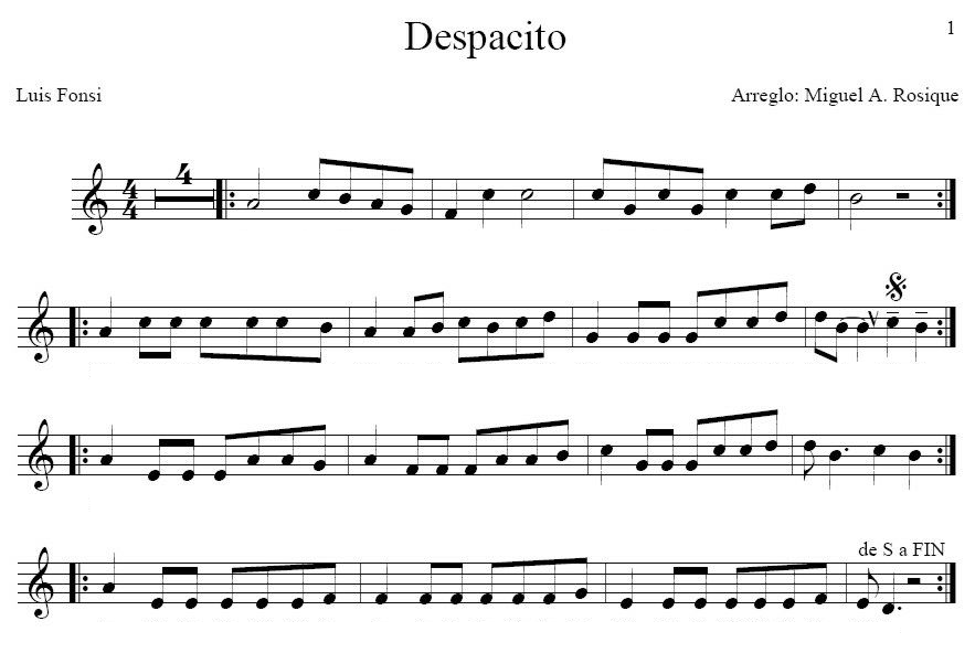 En este caso vamos también a poner nombre a las notas de la canción Despacito de Luis Fonsi y una sinfonía de Mozart.