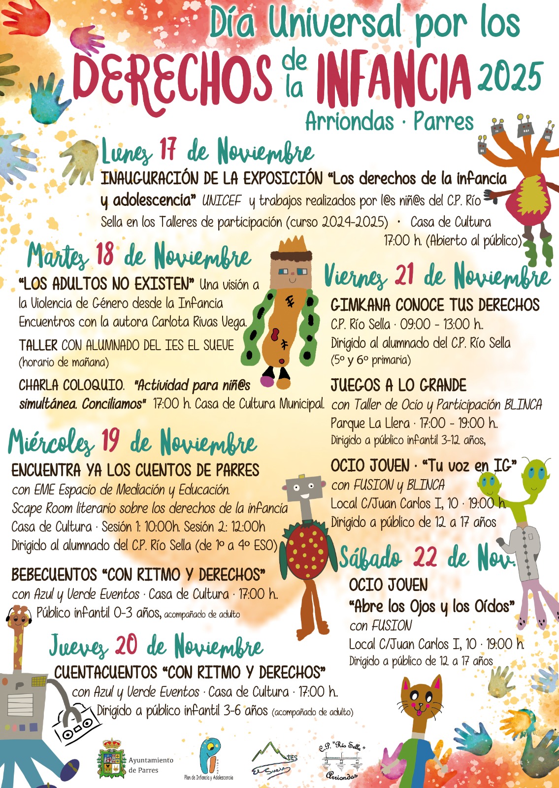Desde el Plan de Infancia y Adolescencia del Ayuntamiento de Parres se organiza una semana cargada de actividades para niños, niñas, adolescentes y sus familias, con motivo de la celebración del Día Universal por los Derechos de la Infancia.