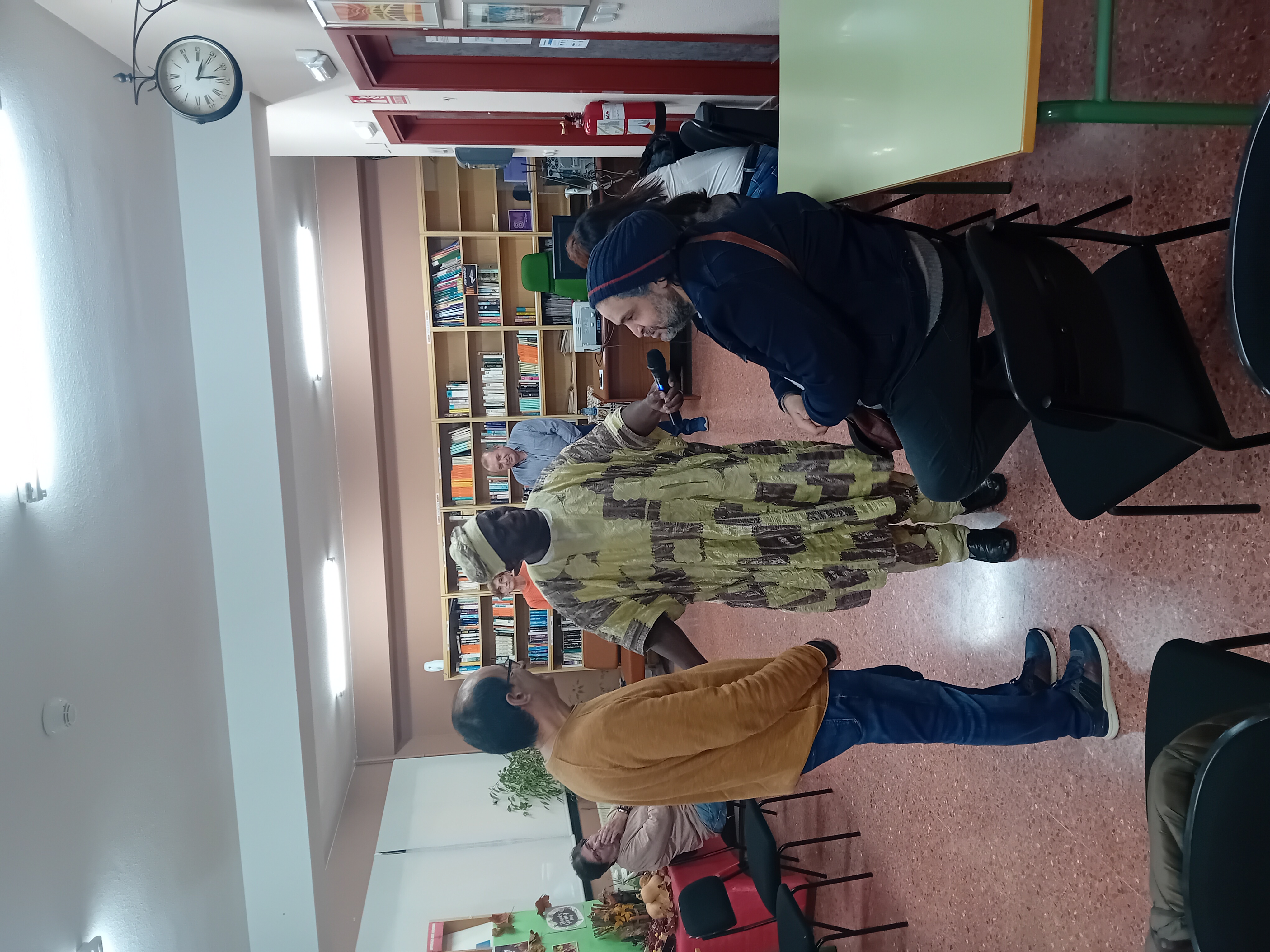 Le jeudi 28 novembre, l'EOI de Mieres a accueilli Samuel Mountoumnjou pour un atelier de contes intitulé Sous l’arbre à palabres. À travers les récits Ubuntu, La bague du roi et Le riche et, le conteur a transmis des idées sur des valeurs universelles telles que la solidarité et l’humilité. Ce qui a marqué cet événement, c’est la participation active du public, invité à devenir acteur des histoires, rendant l’expérience vivante et immersive.
