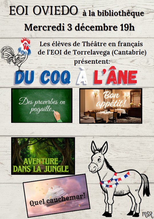 El próximo miércoles 3 de diciembre, teatro en francés a cargo del alumnado de teatro de la EOI de Torrelavega (Cantabria).