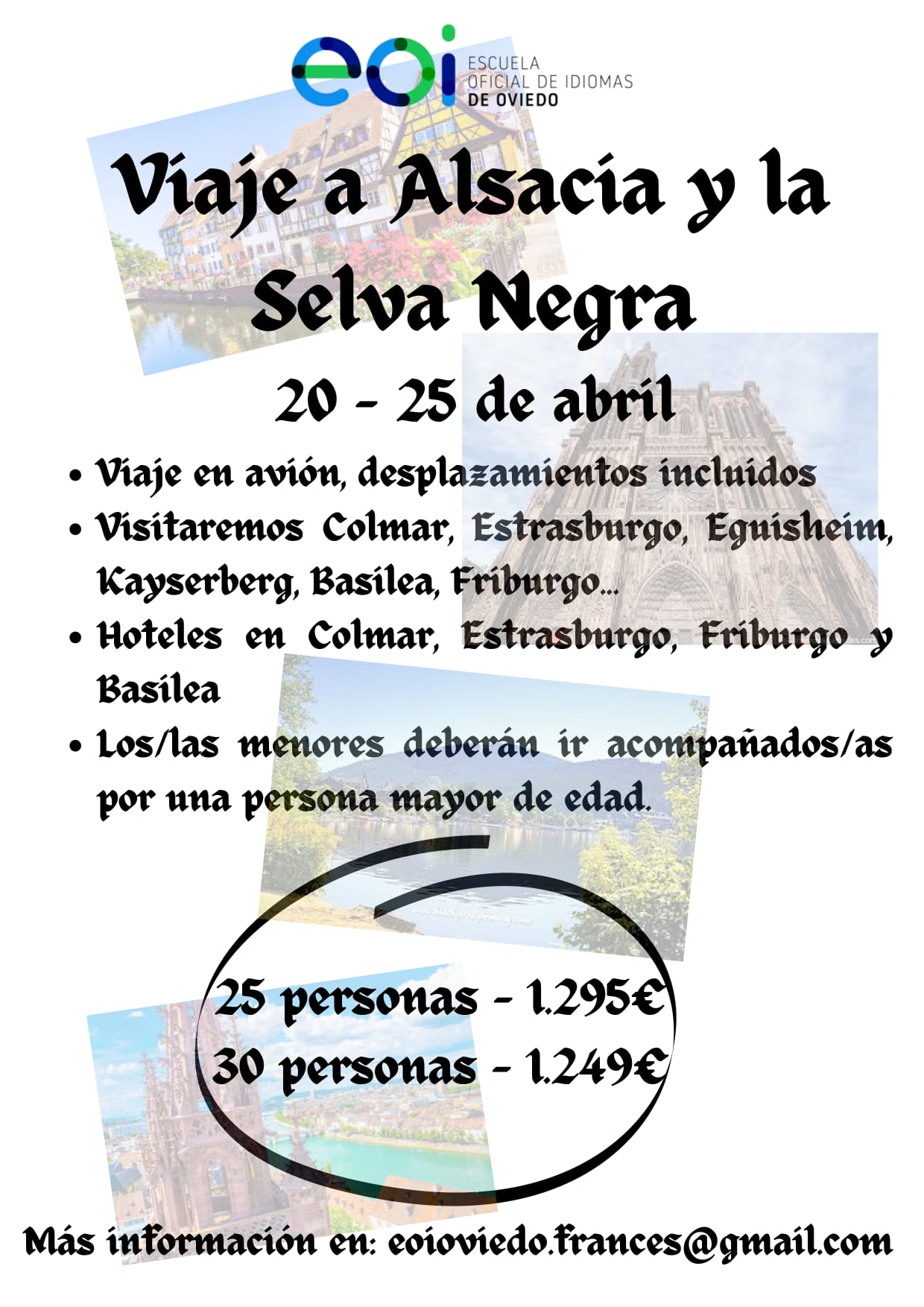 El Departamento de Francés de nuestra EOI organiza un viaje a Alsacia y la Selva Negra del 20 al 25 de abril de 2026. ¿Te apuntas?