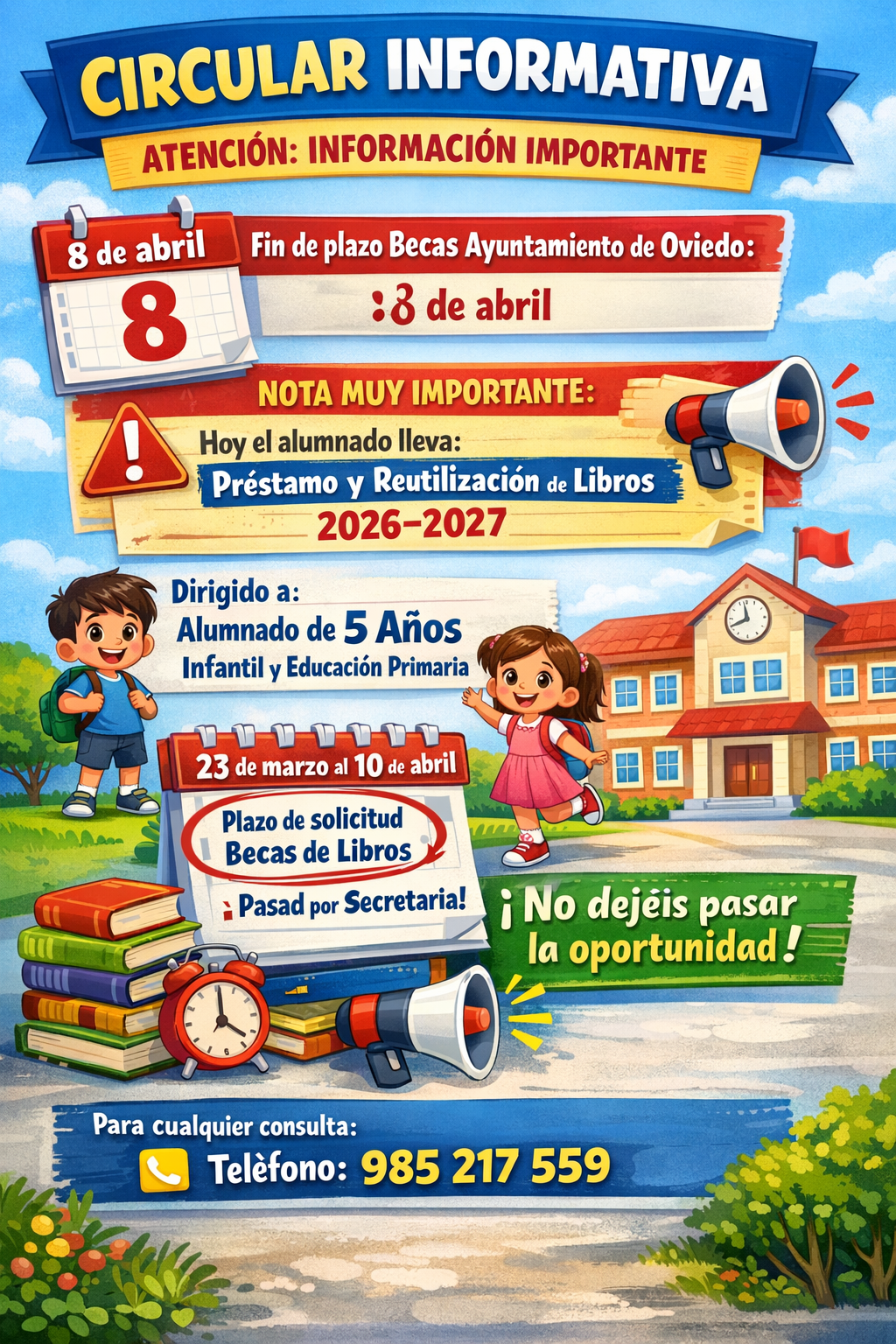 Adjuntamos la lista definitiva de admitidos en las escuelas infantiles 0-3 años asociadas al CP Escuelas Blancas de Oviedo. Así como, la hoja de matriculación para presentar desde el 13 al 25 de junio no aceptandose ninguna solicitud fuera de plazo.