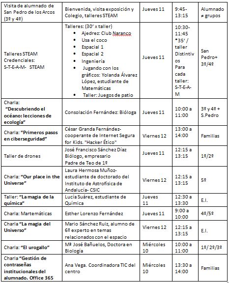 Y talleres para el alumnado de 3º y 4º de San Pedro de los Arcos y San Lázaro