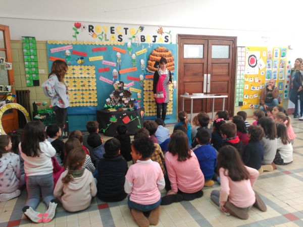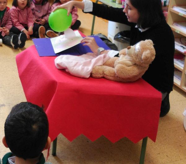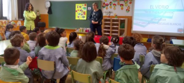 Se iniciaron las actividades en E. Infantil con una charla sobre el vidrio. Descubrieron que se hace a partir de arena en la fábrica de Saint Gobain.