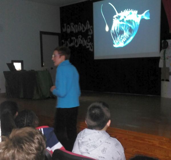 3º, 4º y el alumnado de San Pedro de los Arcos, que hoy nos visitaba, aprendieron cosas sobre los océanos, sus habitantes y las cadenas tróficas.