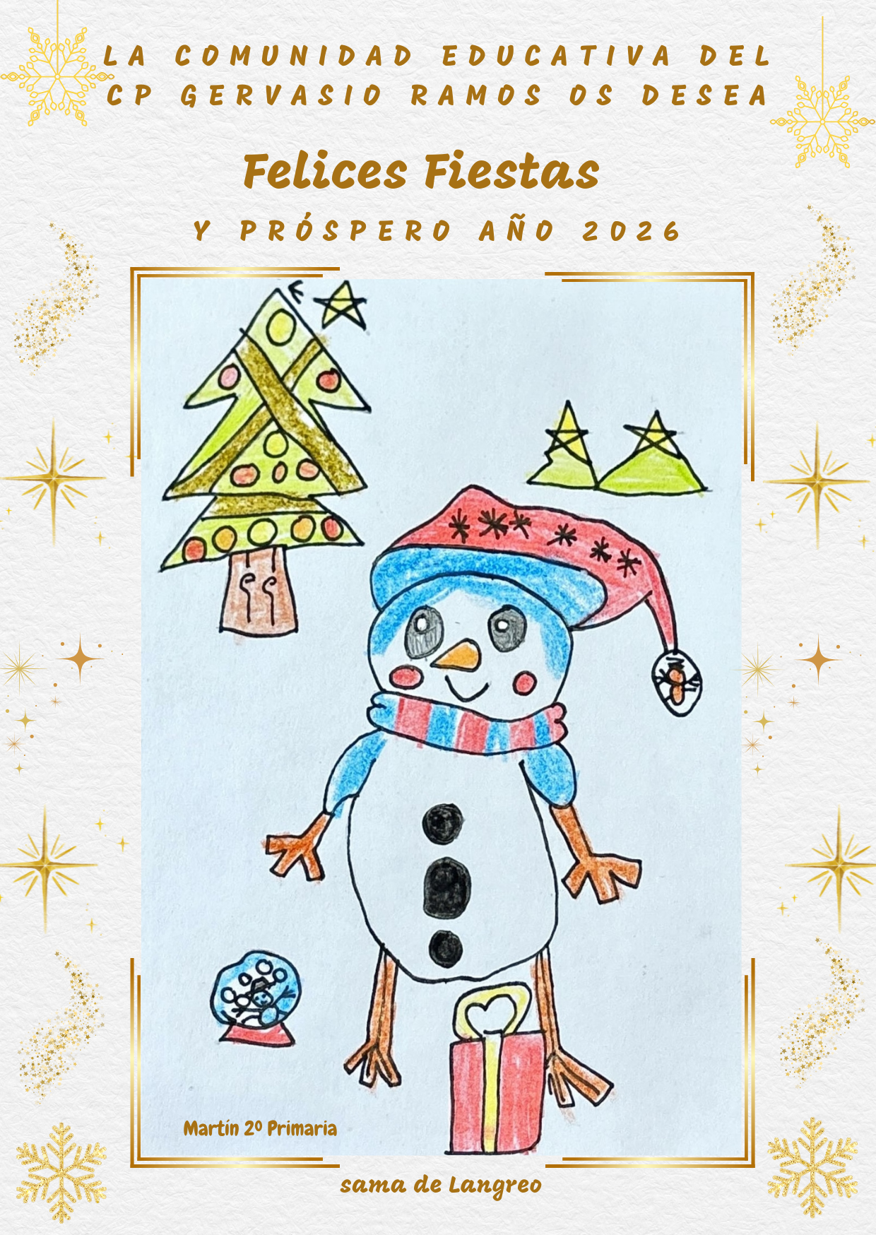 ¡Unas FELICES FIESTAS! y lo hacemos con la postal de Martín (2º Primaria), ganadora del concurso de postales organizado por la AMPA.
