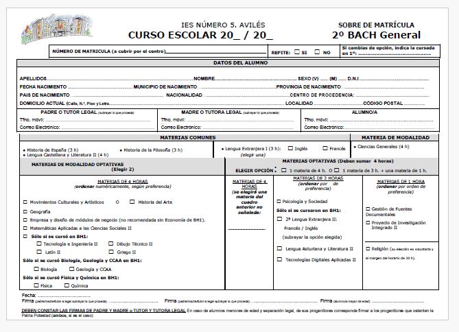 IMPRESOS DE MATRÍCULA