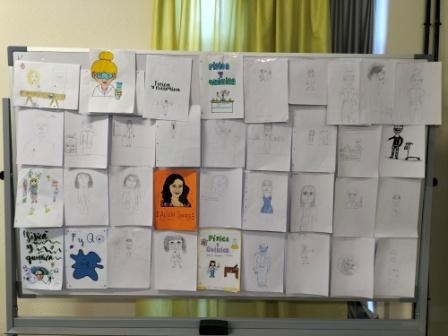 Los alumnos realizaron unos dibujos y una descripción de una persona trabajando en Ciencia, a partir de ellos se hicieron varias reflexiones y se puso en valor el trabajo realizado por las Mujeres en distintos campos.