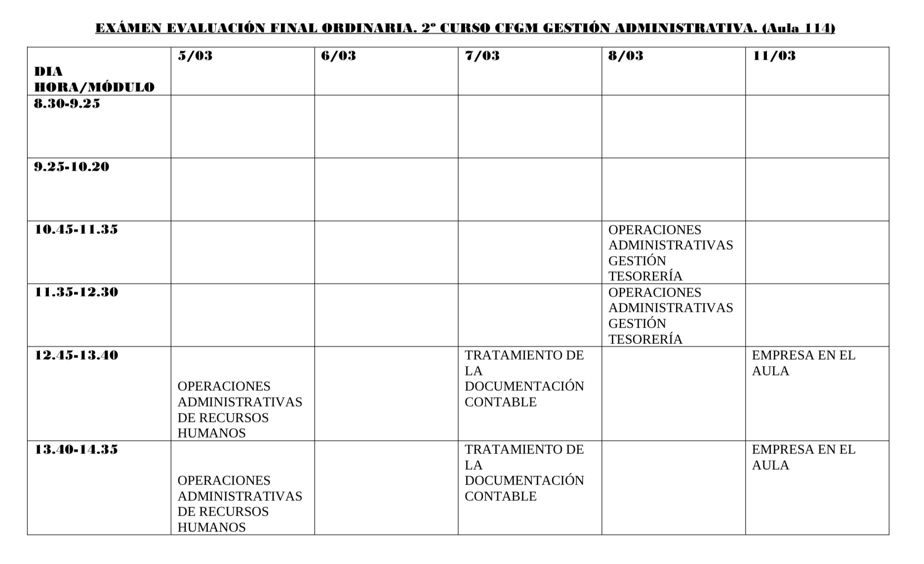 Calendario de exámenes para el 2* curso de los Ciclos Formativos de Gradio Medio "Gestión Administrativa" y Gradio Superior. " Asistencia a la Dirección"