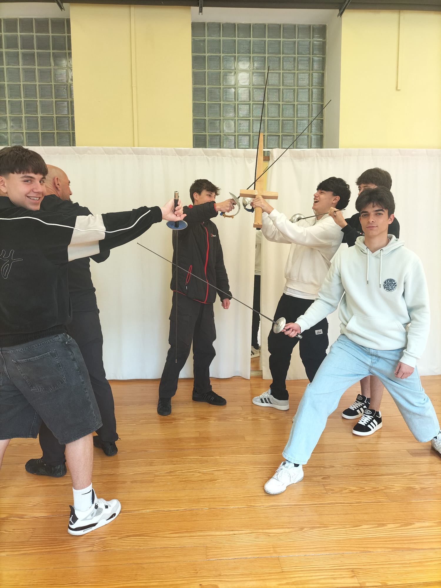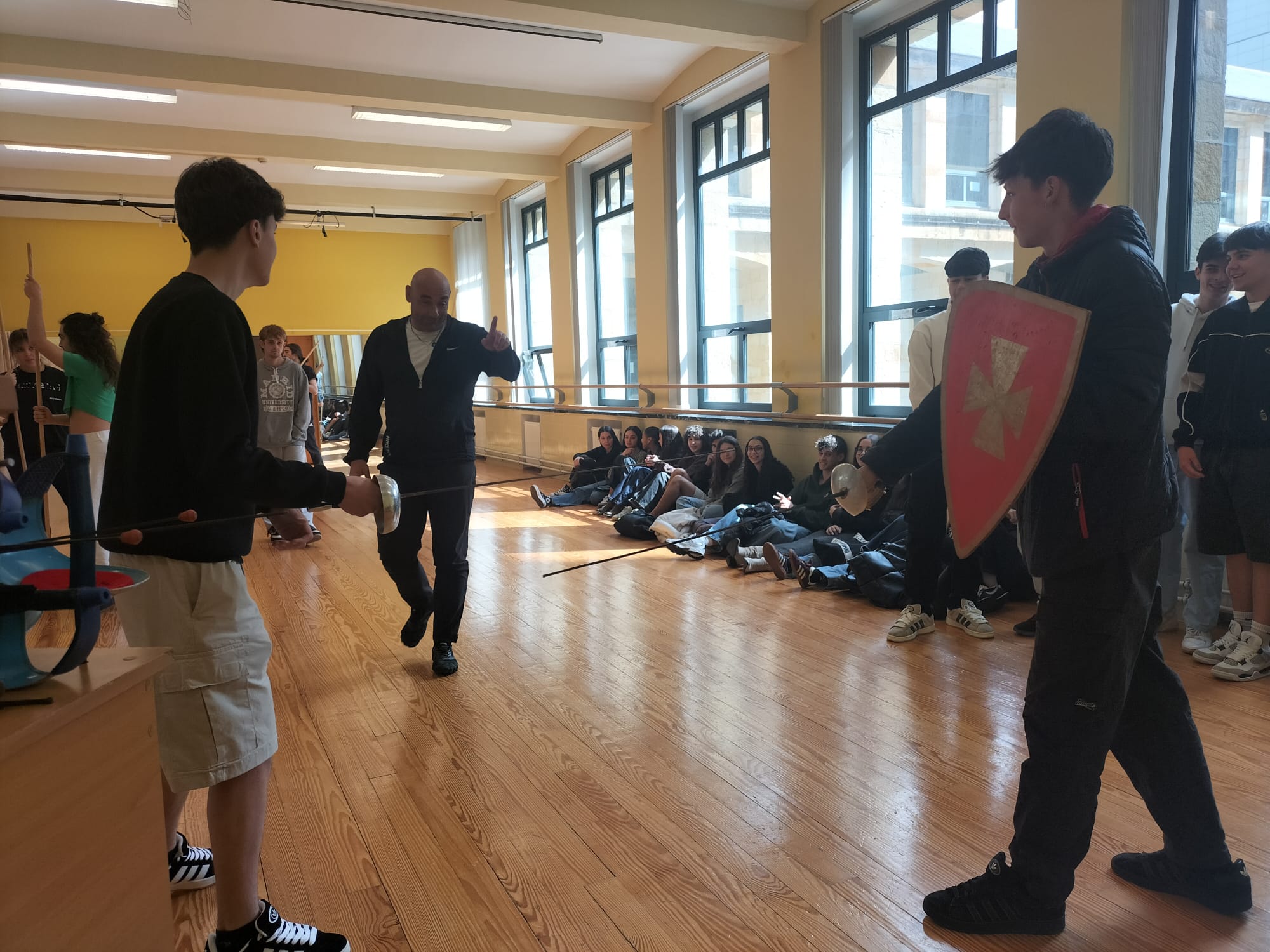 En esta semana especialmente dedicada a los libros hoy hemos seguido celebrando la creación literaria con una visita del alumnado de Literatura Universal de 1º de Bachillerato a la ESAD (Escuela Superior de Arte Dramático de Asturias). En las clases de interpretación del alumnado de 1º y de 4º hemos visto los ensayos de las obras que están preparando como montaje final de curso. También nos colamos en el taller de teatro del Siglo de Oro en el que ensayaban El castigo sin venganza de Lope y en la clase de Acrobacia y Luchas espectaculares en las que, como puede verse, el alumnado se animó a participar activamente. Nuestro más sincero agradecimiento al profesorado y el alumnado de la ESAD por su cálida acogida.