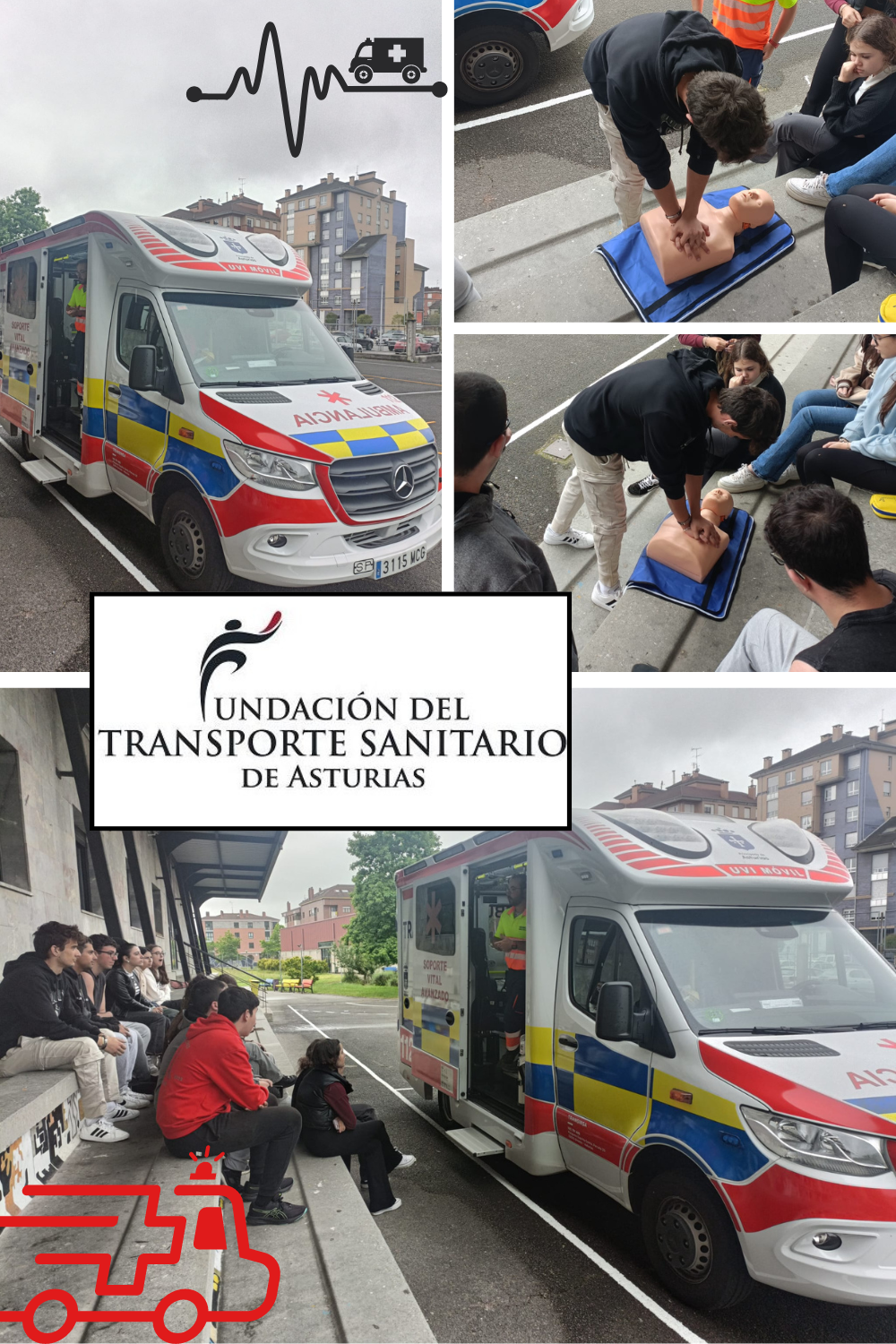 Biología y Geología Esta mañana el alumnado de Anatomía Aplicada de 1º Bachillerato recibió la visita de la Fundación del Transporte Sanitario de Asturias. Gracias a ella, han podido conocer cómo es una UVI móvil por dentro, así como las principales maniobras de emergencia. Nuestros alumnos y alumnas ya están preparados para enfrentarse a cualquier urgencia.