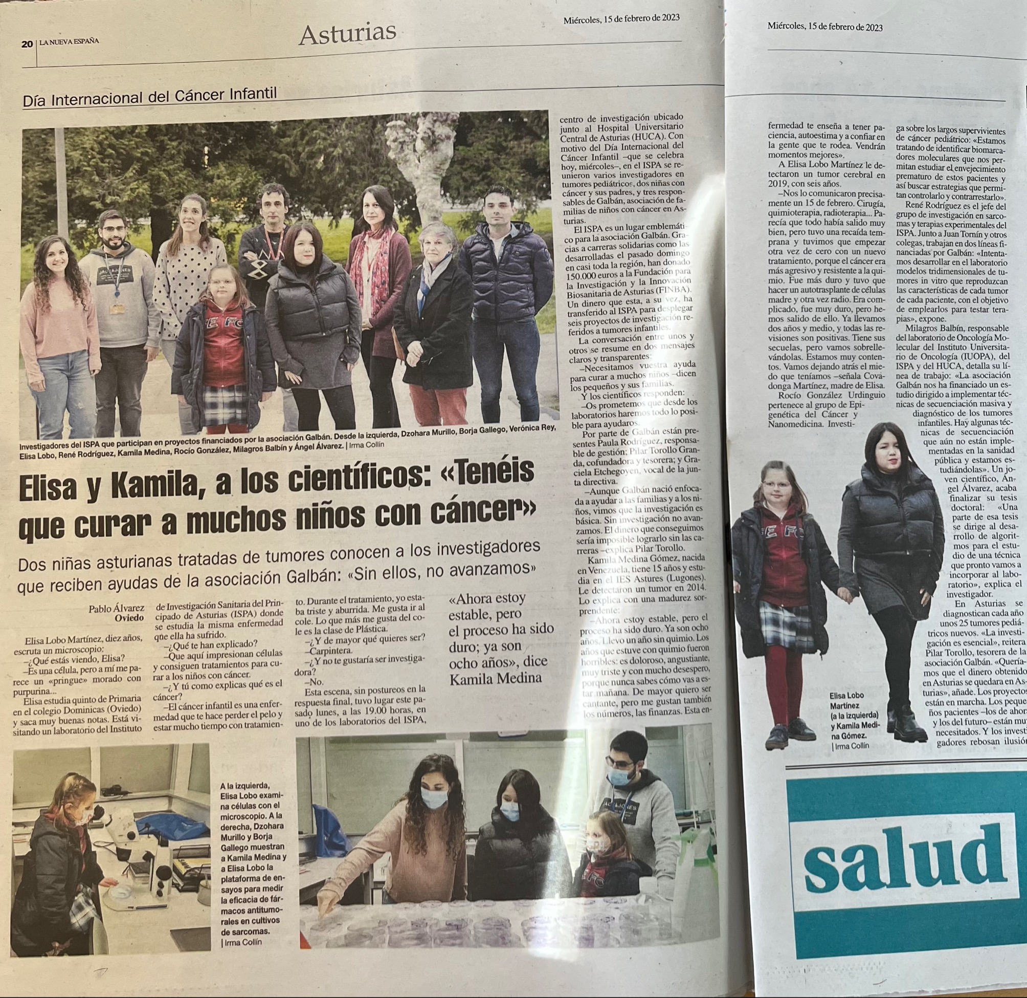 Gracias a la Asociación Galbán de familias de niños con cáncer en Asturias, nuestra alumna Kamila Medina ha podido conocer, el pasado 15 de febrero, a algunos de los investigadores especializados en tumores infantiles.