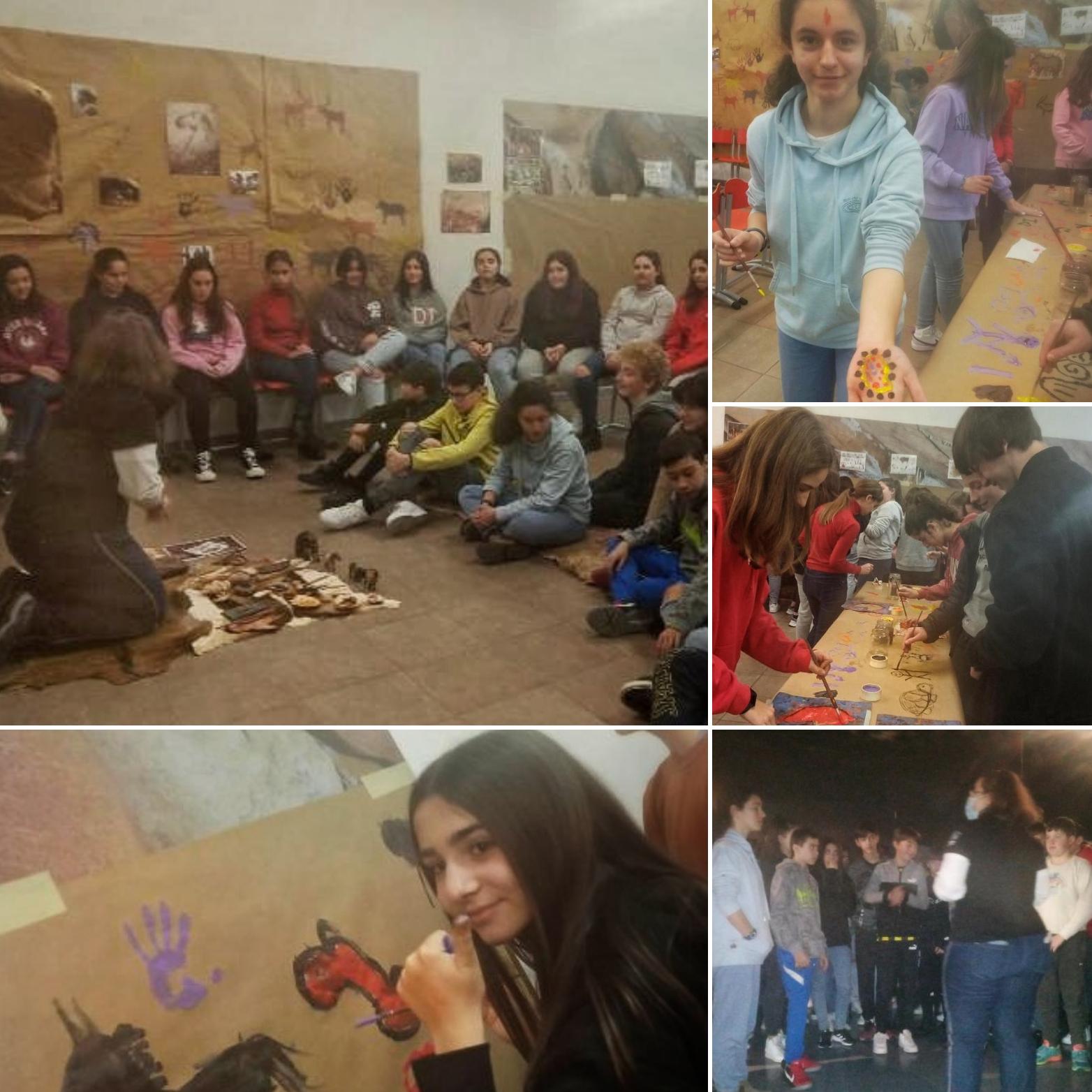 En sus instalaciones, nuestro alumnado de bilingüe de primero y segundo de ESO puso en práctica las técnicas empleadas en el arte rupestre a través de plantillas, carbones vegetales y óxidos, tal y como lo hubiera hecho el artista paleolítico.