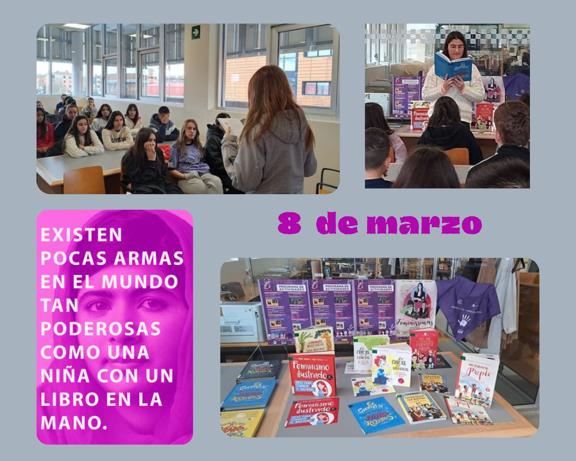 El pasado 8 de marzo el alumnado de 1º ESO acudió a la biblioteca pública de Lugones para conocer, descubrir y homenajear a mujeres que, a lo largo de la historia, nos han ido abriendo camino en campos tan diversos como el deporte, el cine, la música, la ciencia o los negocios.