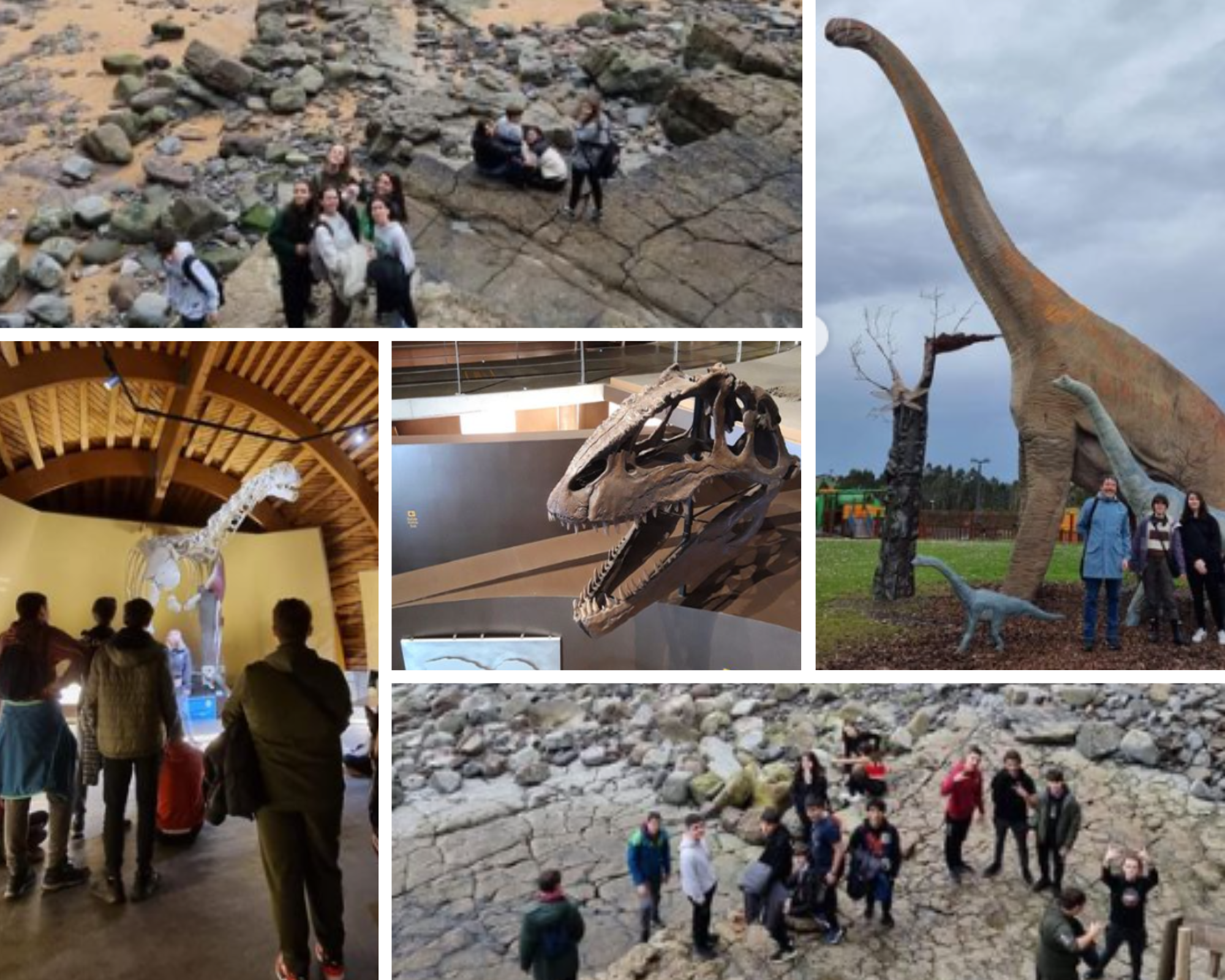 Geografía e Historia El alumnado de 4º ESO bilingüe pasó un día de lo más jurásico visitando el MUJA y la playa de la Griega, donde pudieron ver y tocar huellas de dinosaurios.