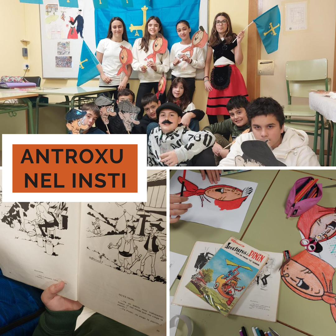 Asturianu Los neños y neñes de 1ºE y 1ºF, xuntu con la su profesora María, celebraron l'antroxu nel institutu. Primero conocieron un poco la historia de Pinín, Pinón y Telva disfrutando de algunos comics y realizando caretas. Después, empezó la "folixa" y se pusieron hasta arriba de frisuelos, casadielles, picatostes y alguna que otra "llambionada" más.