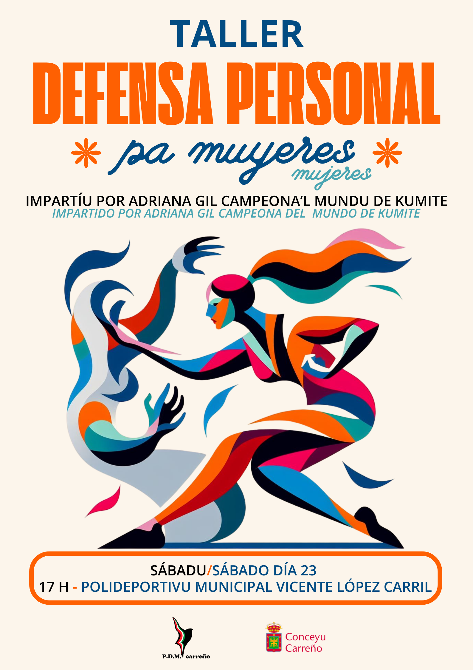 Compartimos con la comunidad educativa el cartel que nos hacen llegar desde el Ayuntamiento de Carreño sobre el Taller de Defensa Personal pa muyeres que impartirá el próximo sábado Adriana Gil, Campeona del Mundo de Kumite y ex-alumna de nuestro centro.
