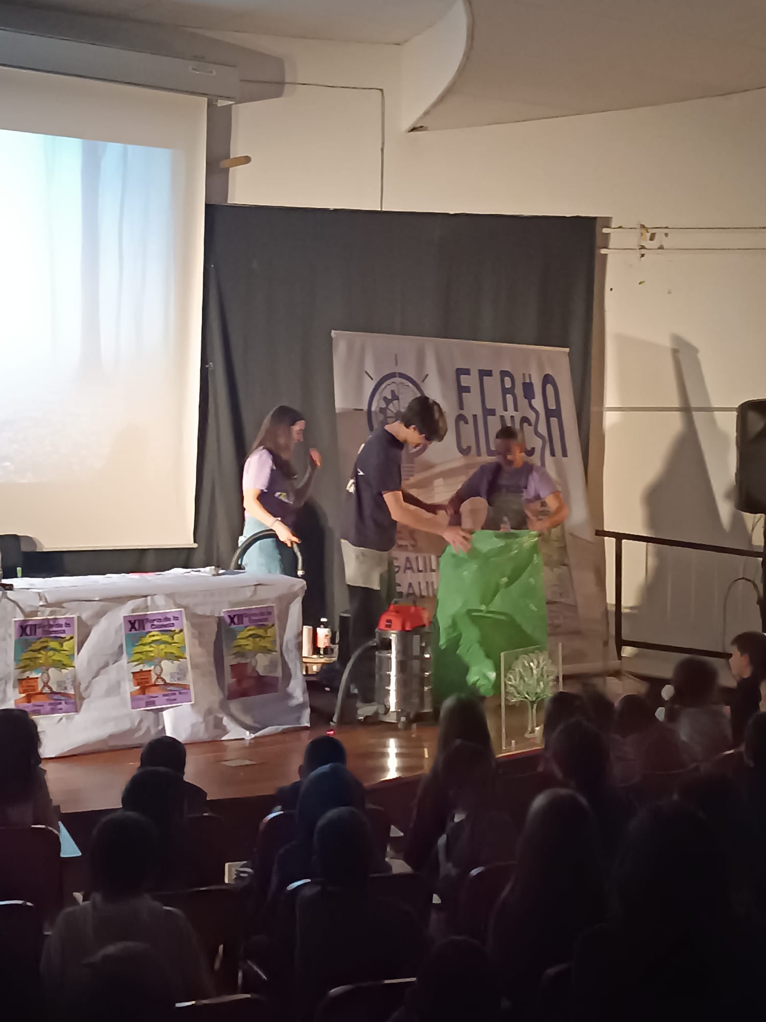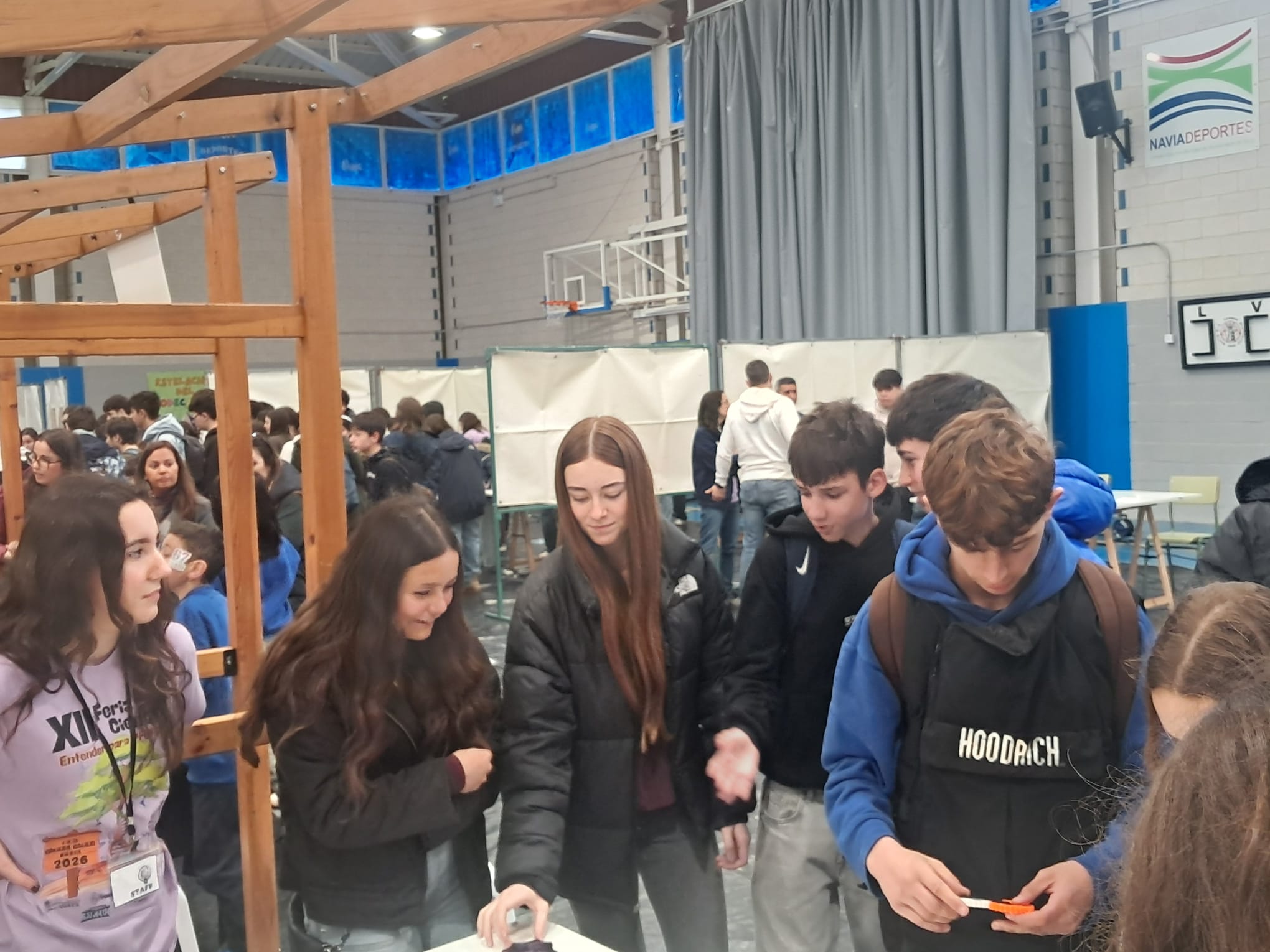 El alumnado de 3º ESO acudió ayer a la Feria de la Ciencia de Navia, acompañados por los profesores Javier Redondas, Pablo Fernández y Lucía López. Durante toda la mañana pudieron visitar los diferentes stands, participar en varios talleres y, como novedad este año, presenciar un entretenido show de ciencia en el salón de actos del instituto.