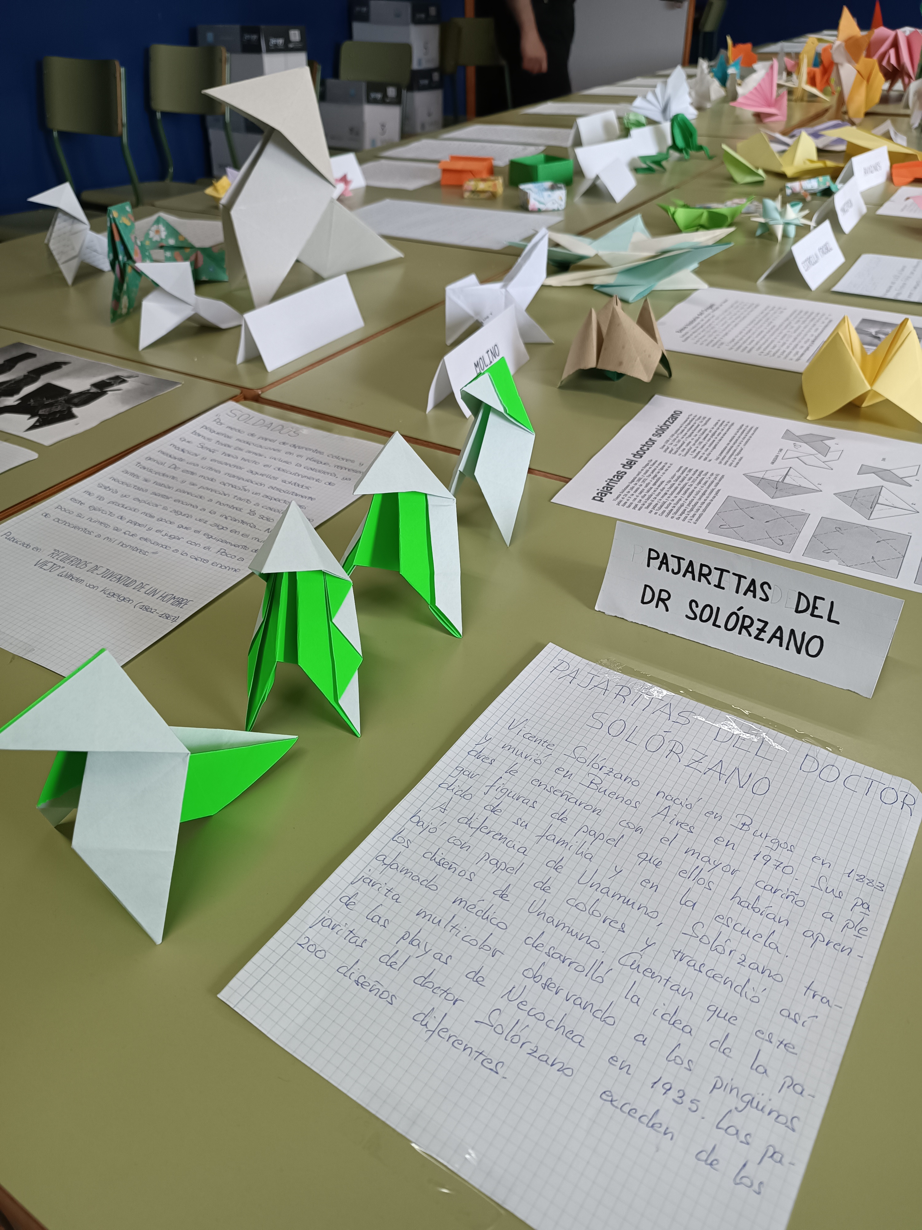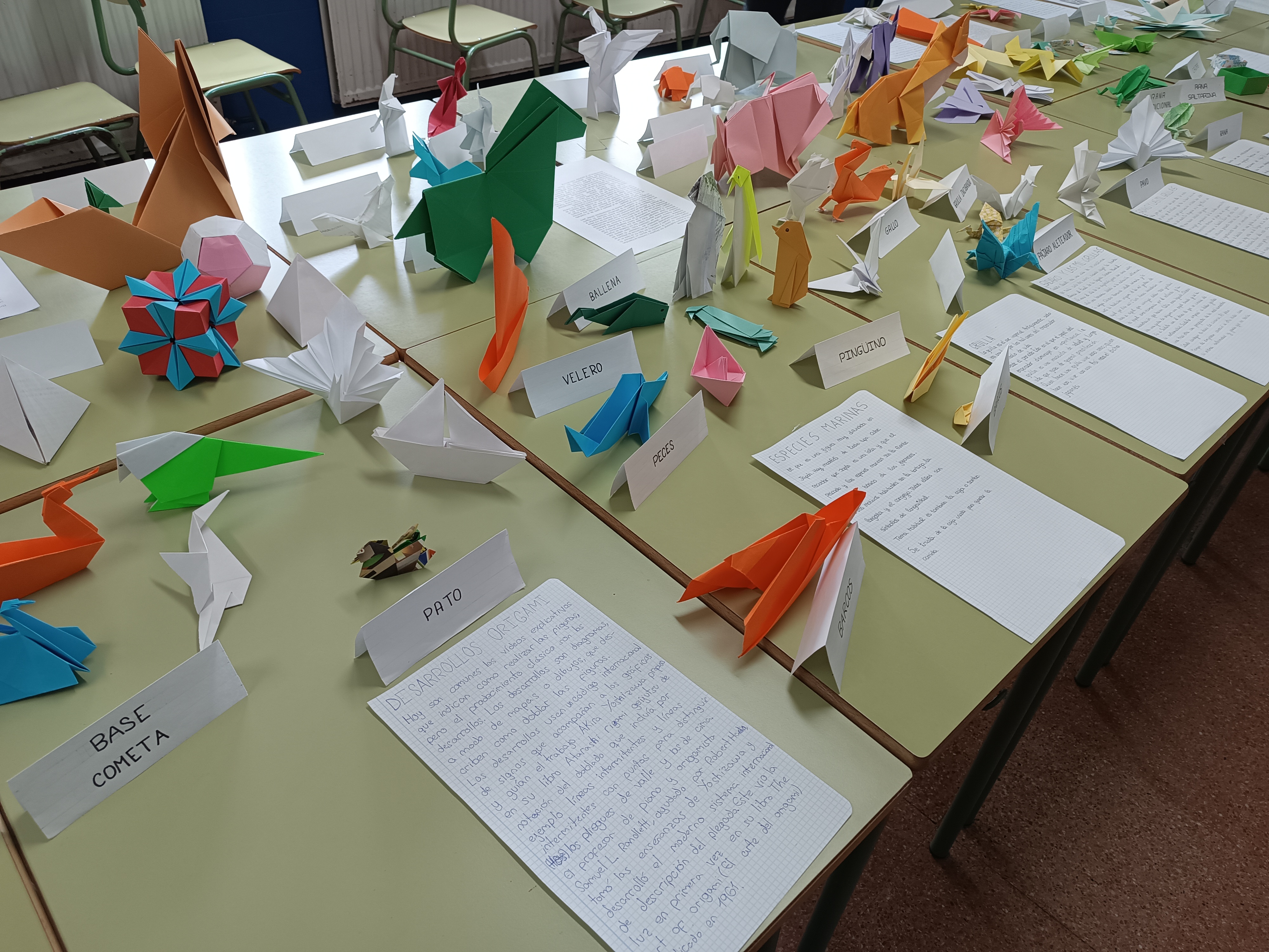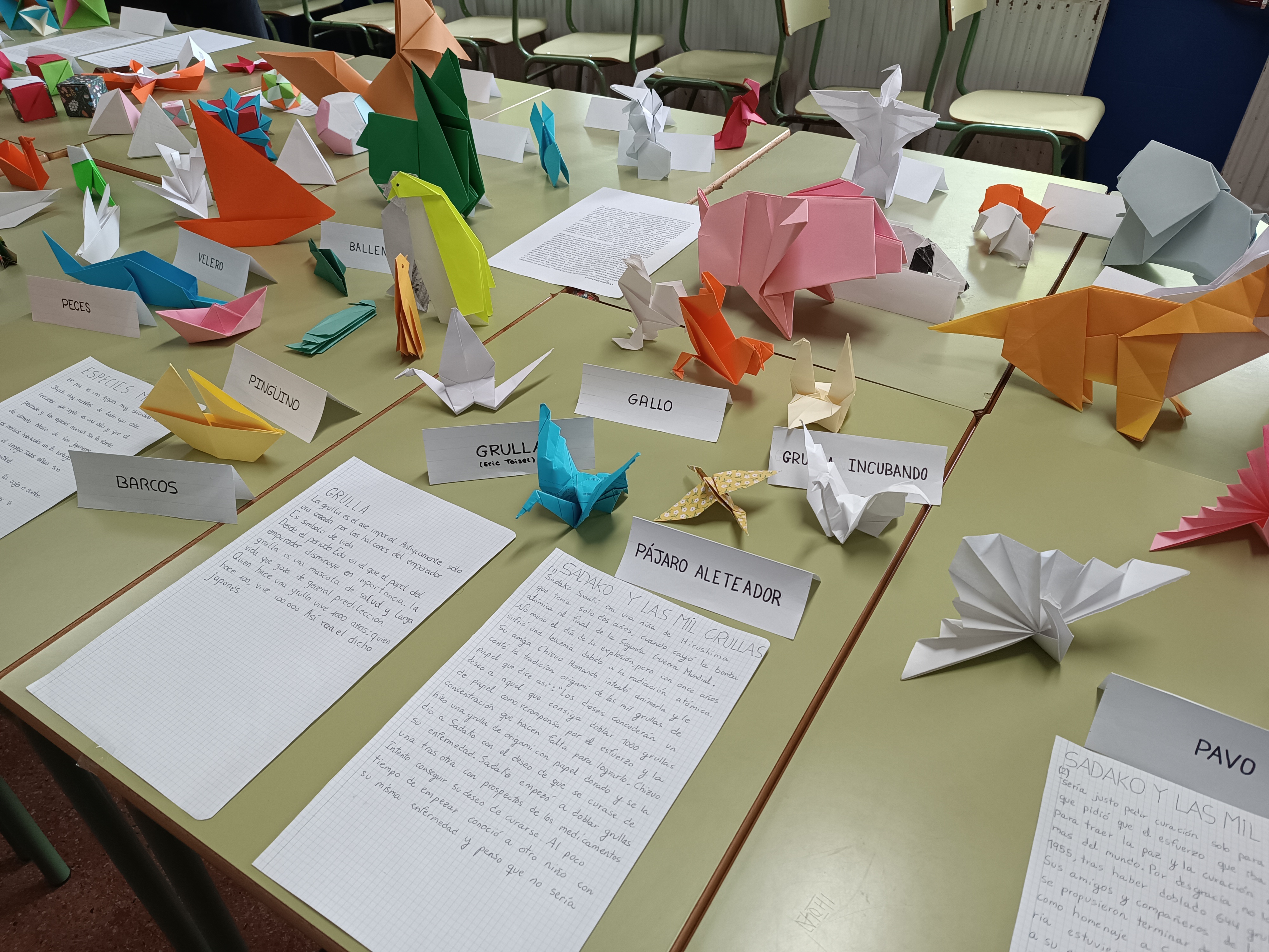 Los alumnos de Atención Educativa de 2ºESO A y 2ºESO B, con ayuda de otros compañeros y de su profesor Eugenio Díaz, han elaborado a lo largo del curso una serie de figuras de papiroflexia. Con todas ellas han elaborado una preciosa exposición que puede visitarse durante estos días en el aula 0.1.