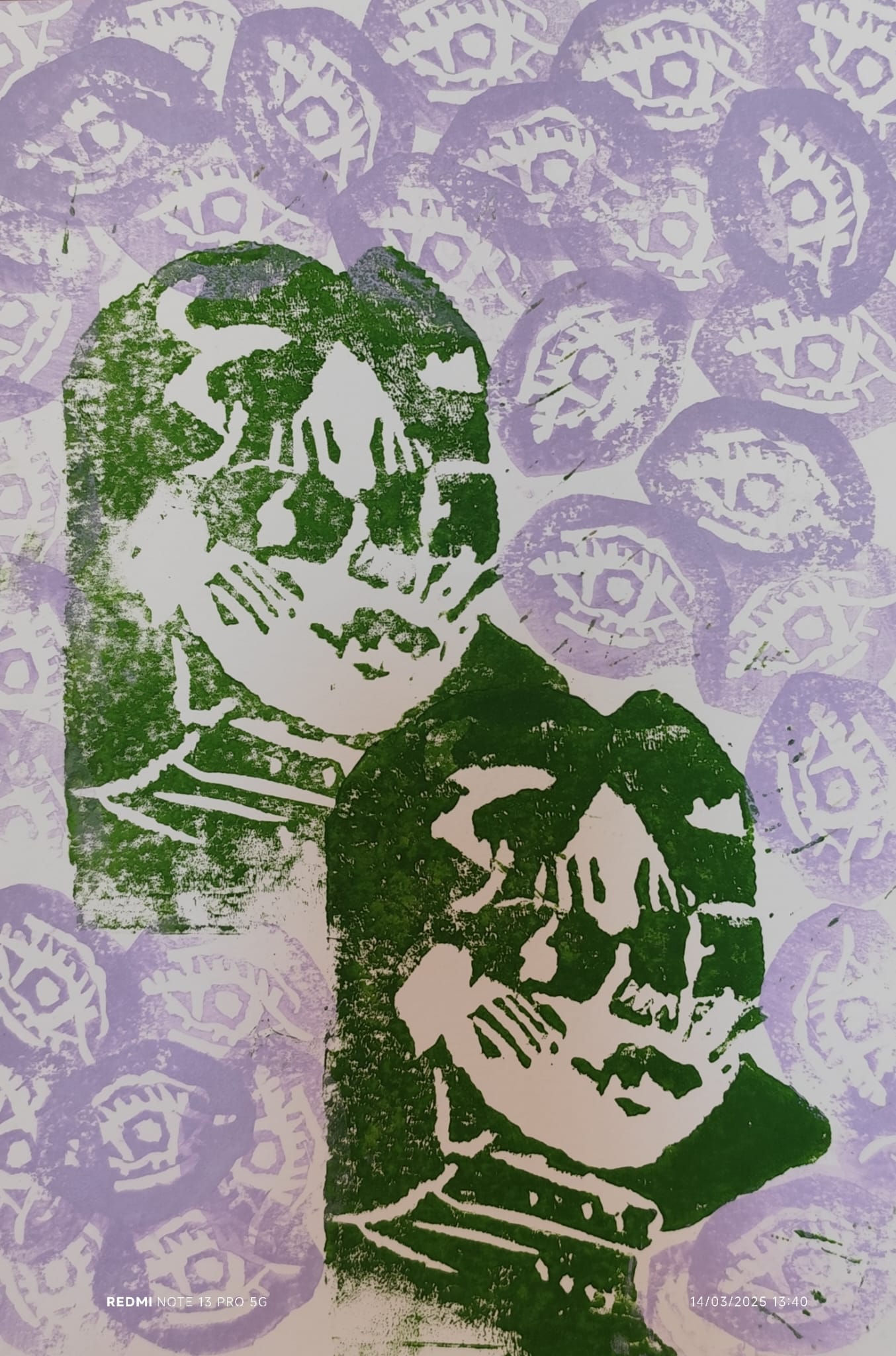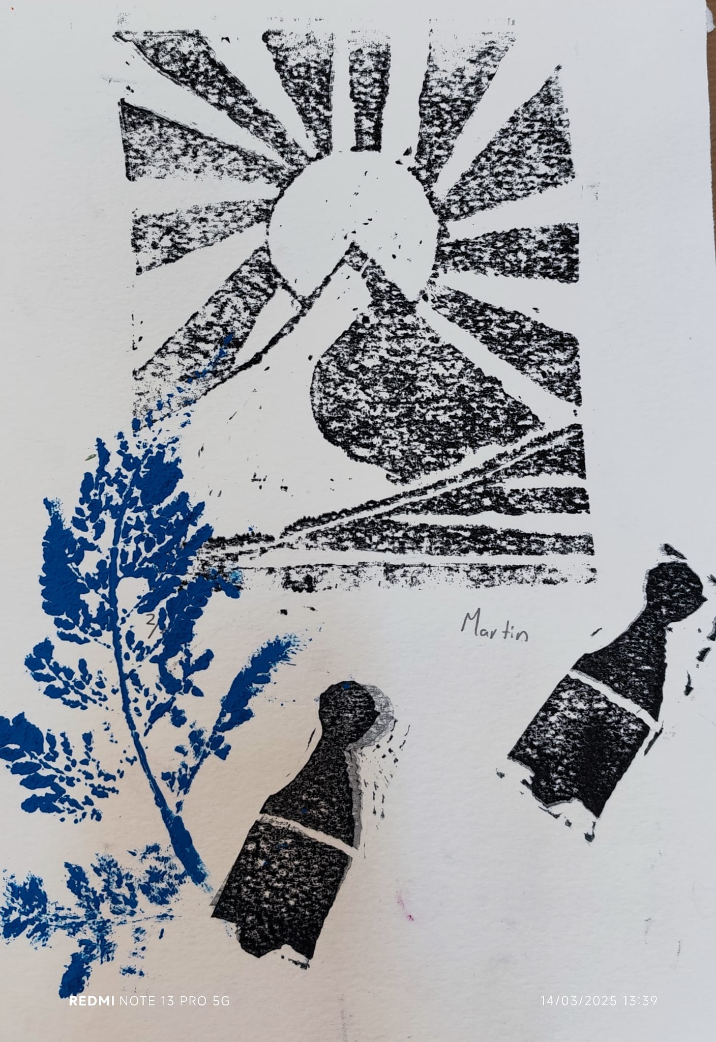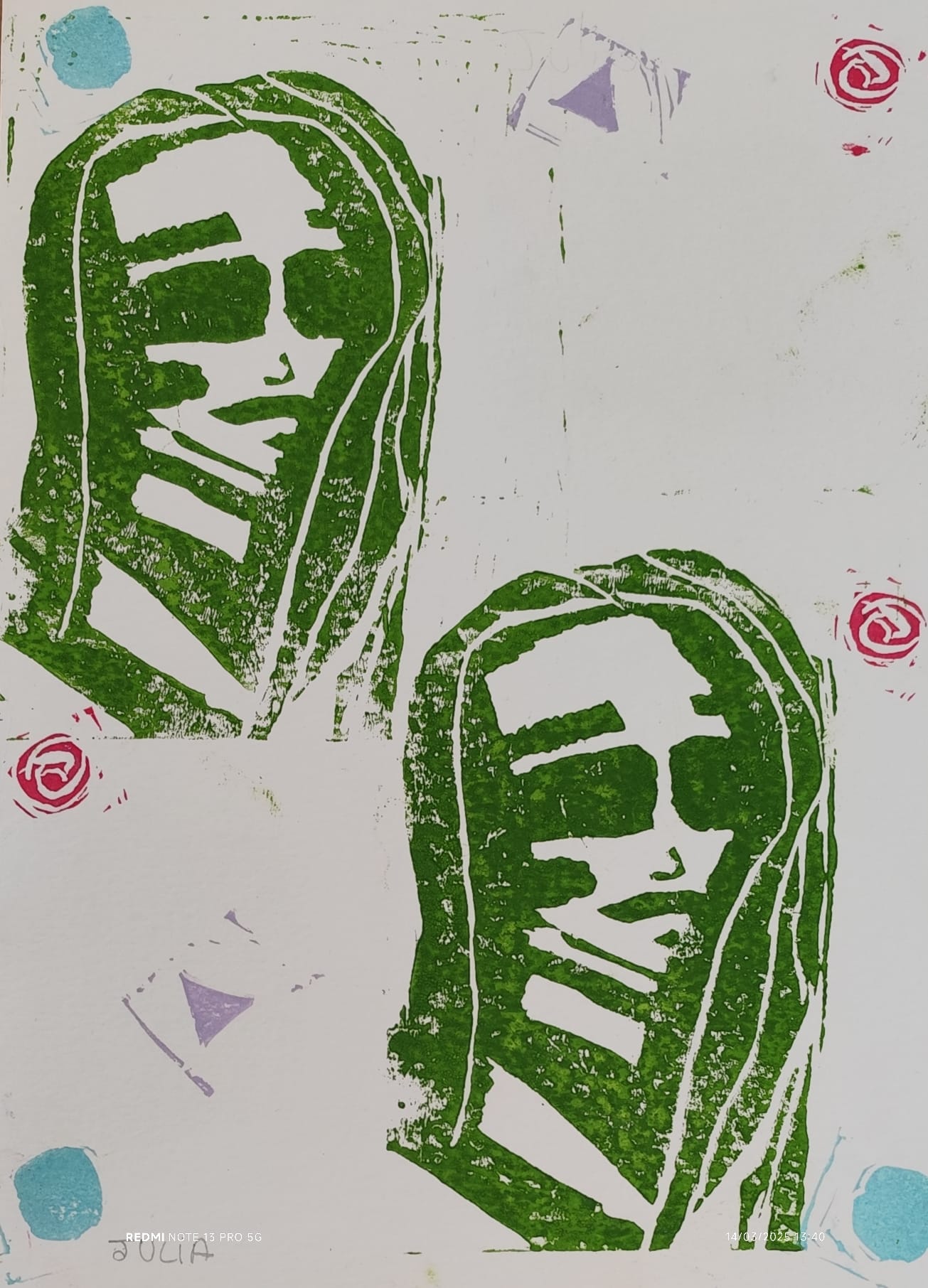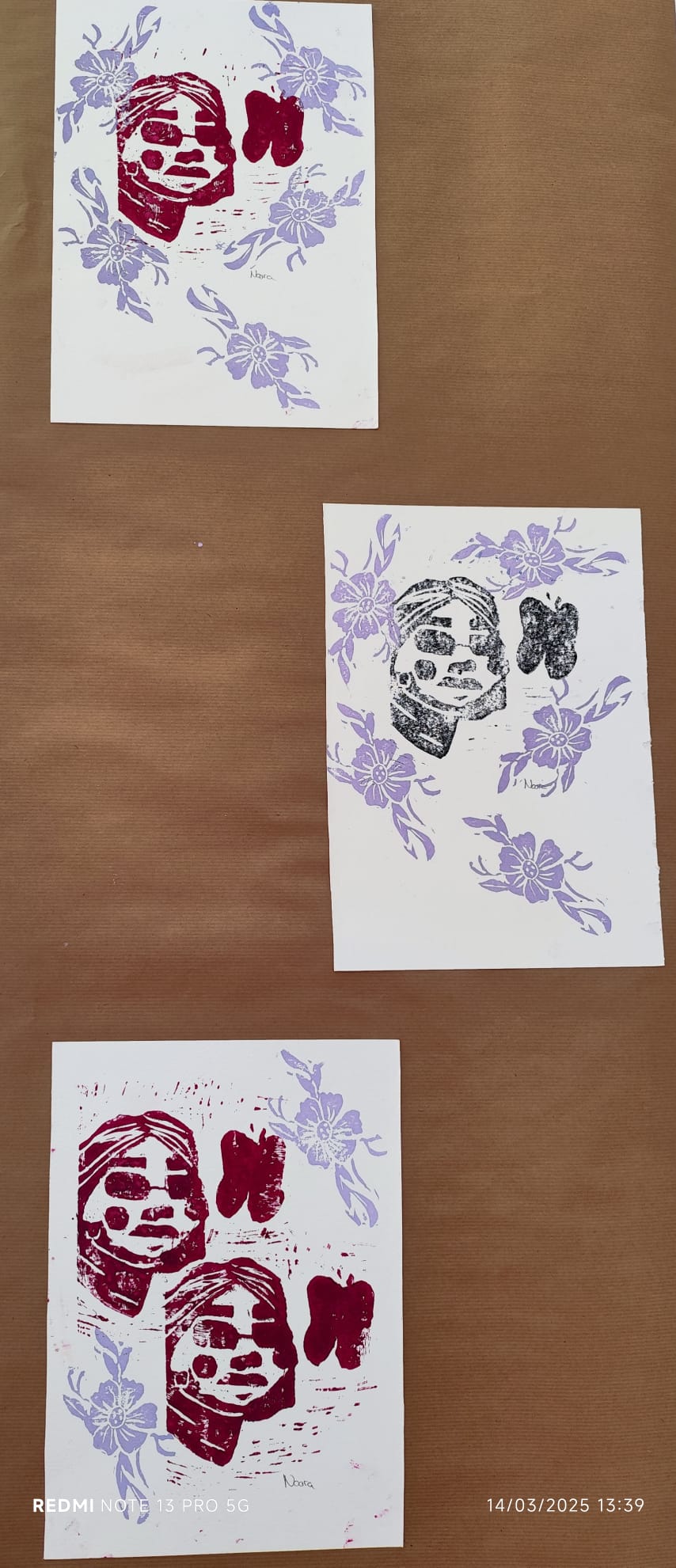 Los estudiantes que asisten a los recreos artísticos realizaron, con la ayuda de las profesoras Cristina y Ángela, estos magníficos trabajos con la técnica "grabado sobre linóleo".