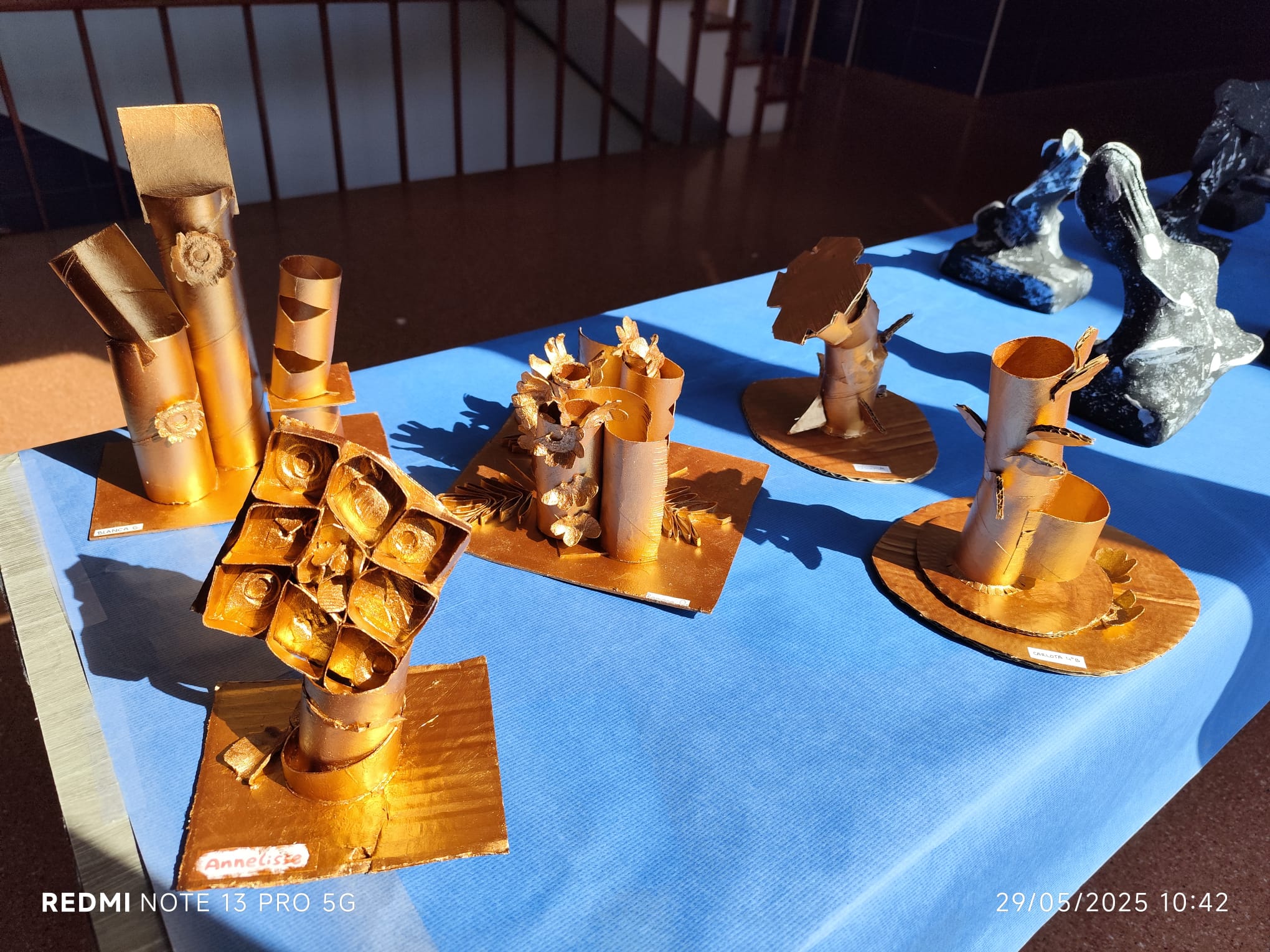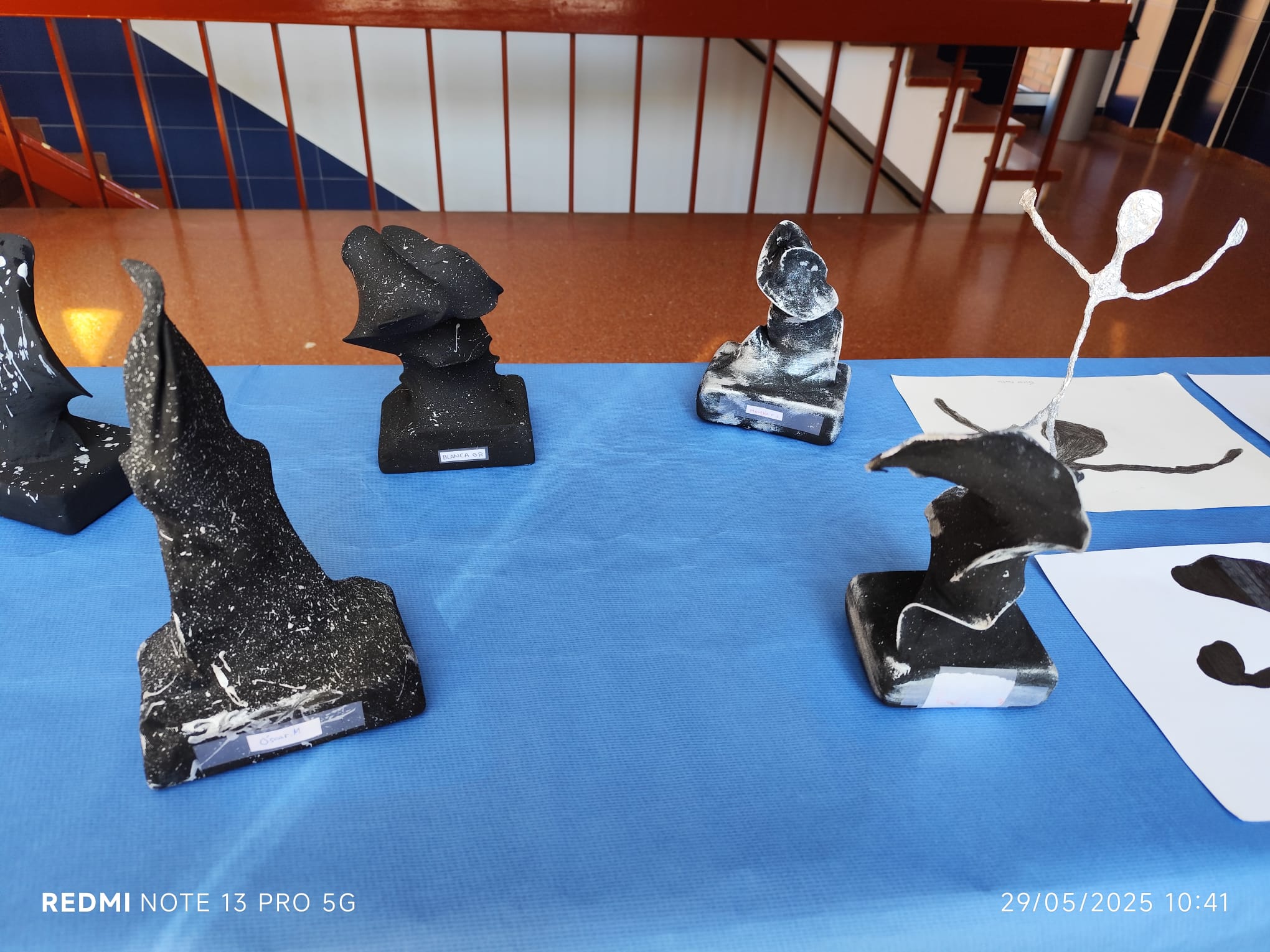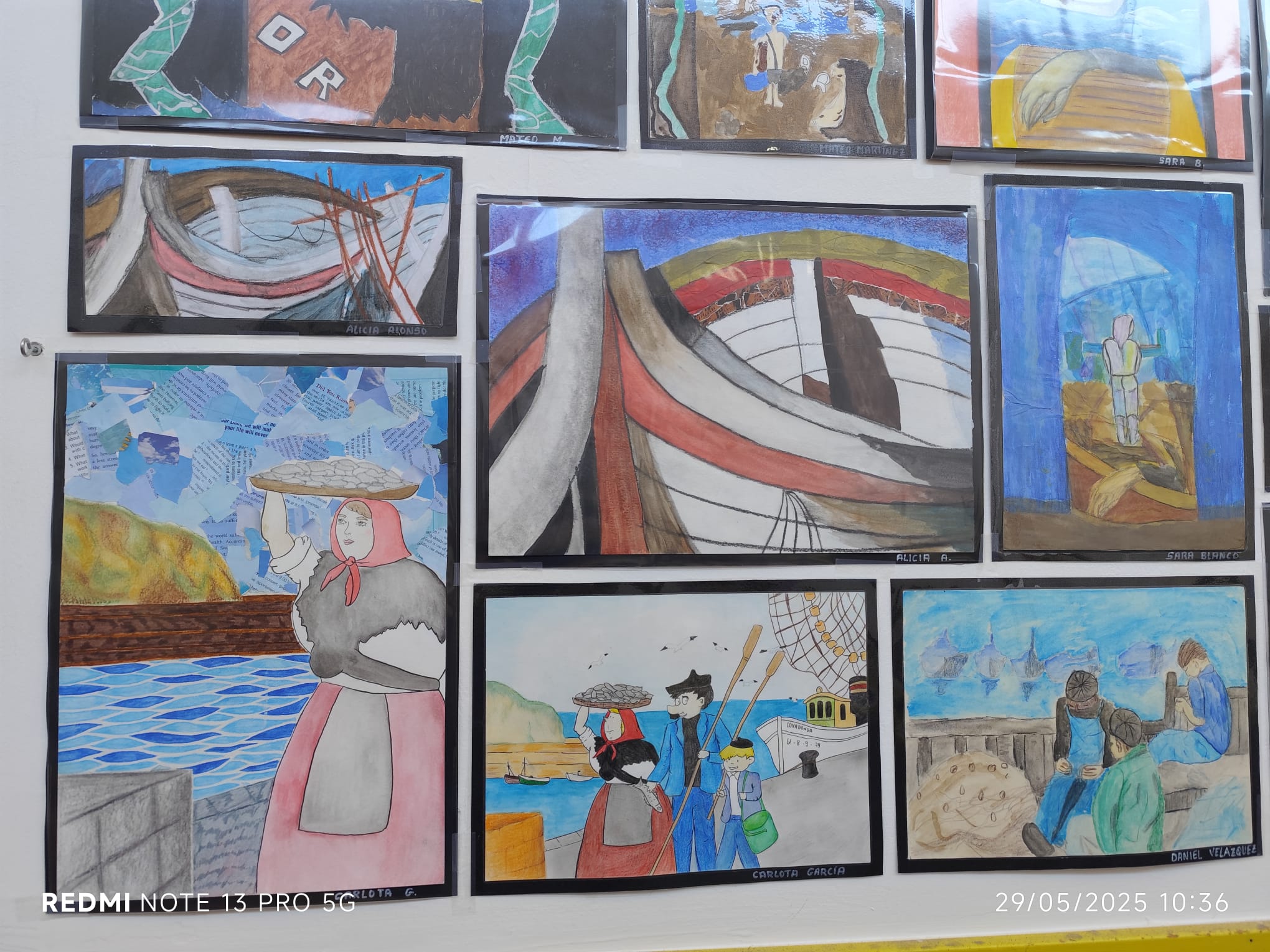 Os mostramos unas fotos de los trabajos realizados or los alumnos de 4ºESO de la asignatura de Expresión Artística. Se trata de réplicas e interpretaciones de los murales de Candás y estudio del volumen con materiales reciclados (cartones, alambres, medias,...).