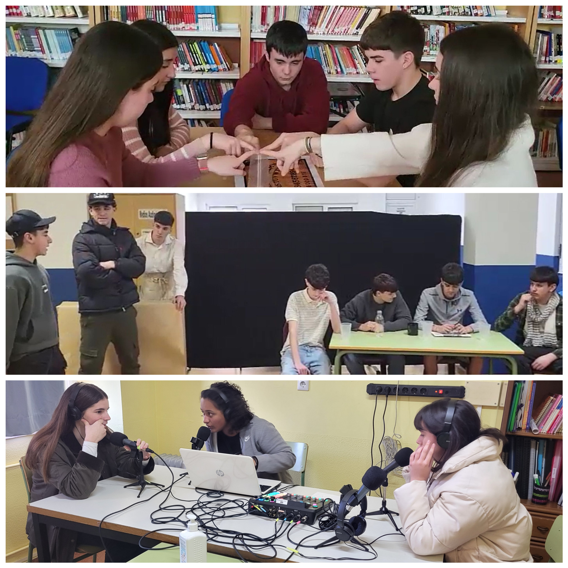 Los alumnos y alumnas de ESO, de forma individual, por parejas o en grupos, participaron en la grabación de varios cortometrajes. Además, un alumno de 3ESO escribió y grabó un monólogo.