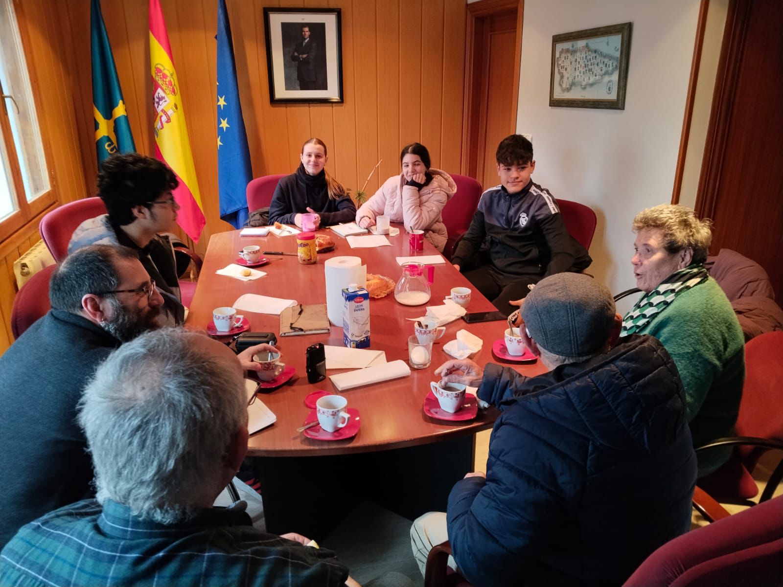 En esta ocasión nos desplazamos al concejo de Yernes y Tameza, donde fuimos recibidos en su capital, Villabre, por la alcaldesa del municipio, María, quien nos dio la bienvenida en el salón de plenos con un delicioso desayuno.