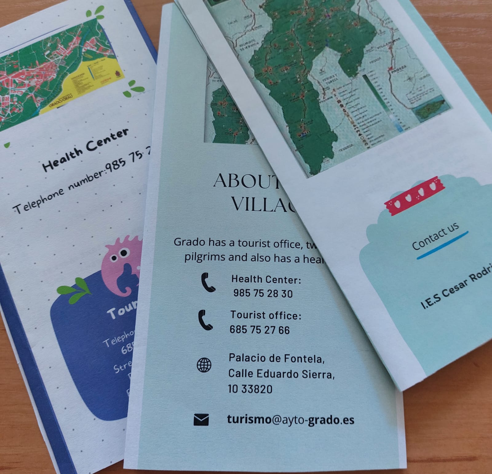 Dentro del proyecto Arraigados, el alumnado de 3º ESO no bilingüe ha creado folletos sobre Grado y el camino de Santiago. Actividad propuesta por el departamento de inglés.