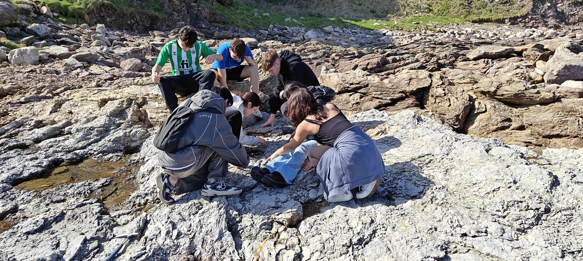 Leyendo las piedras en Arnao. El alumnado de Geología de 2 de bachillerato ha visitado el pasado miércoles 26 de febrero el arrecife de coral del entorno Salinas-Arnao. Pudieron investigar sobre las condiciones tropicales de la zona, ¡con 400 millones de años de diferencia!