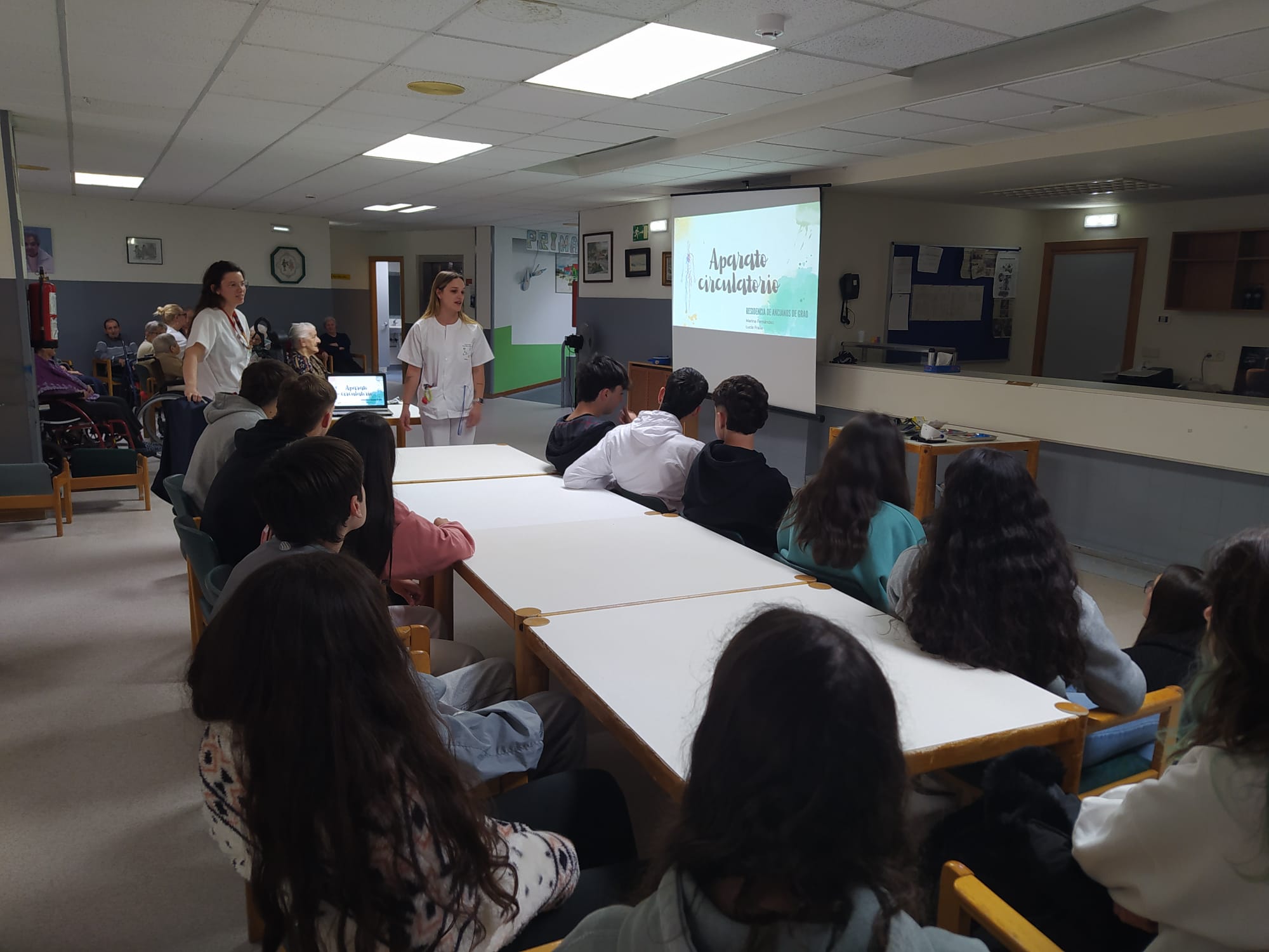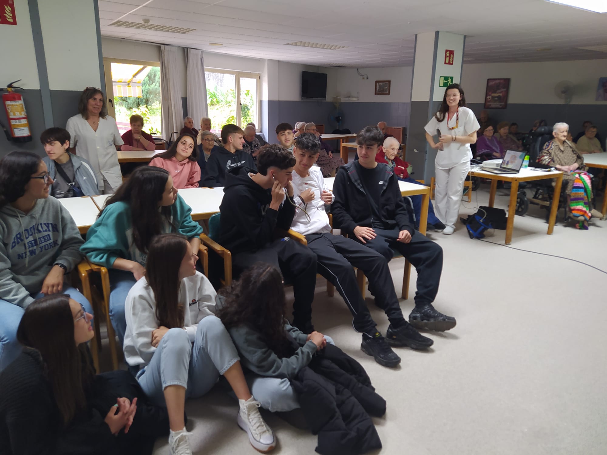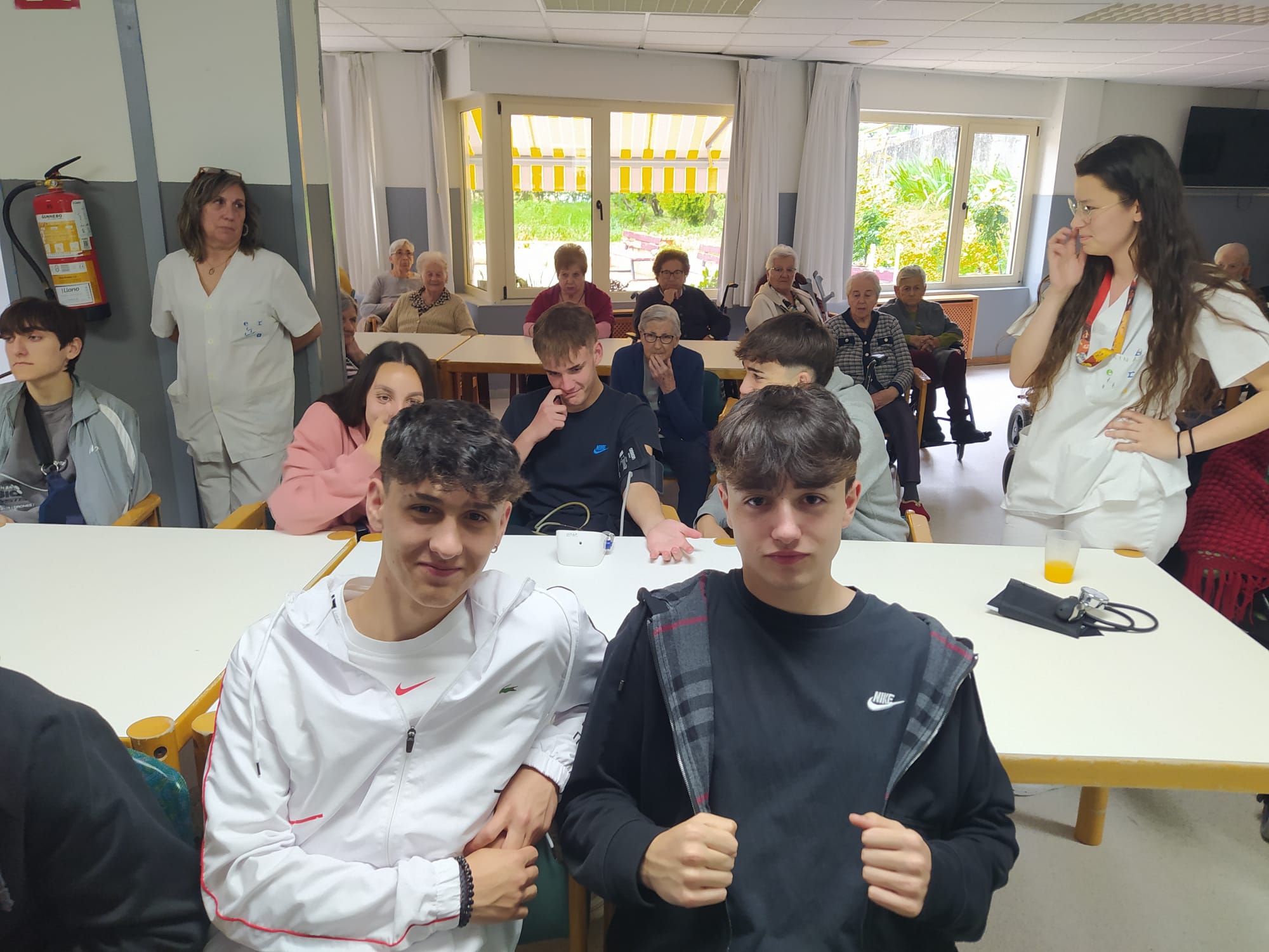 El pasado martes, 23 de abril, el alumnado de 1º Bachillerato visitó la residencia de Grado. Aprendieron a medir la tensión y a sacar sangre, e hicieron lo primero con los residentes y lo segundo con las enfermeras.