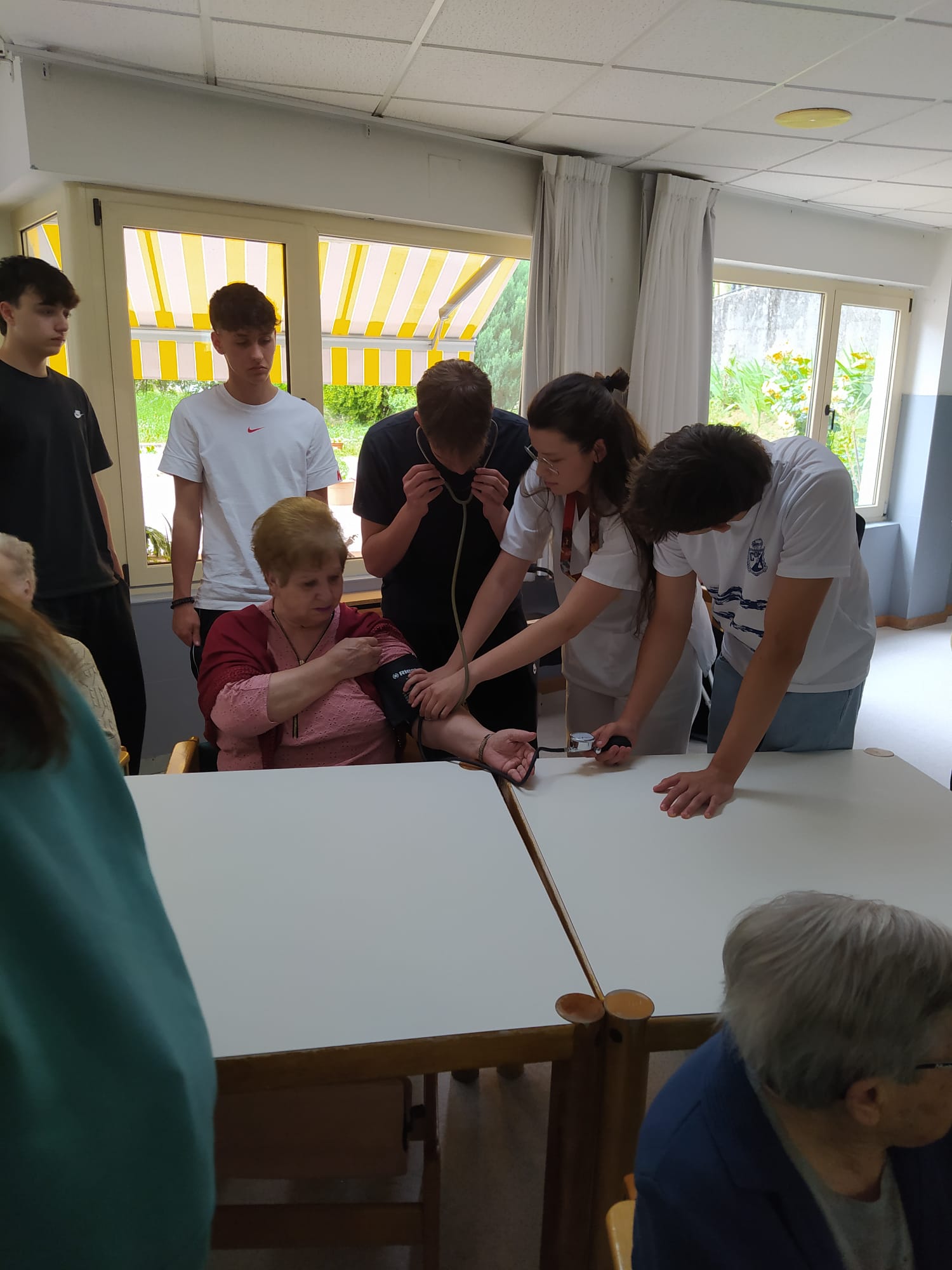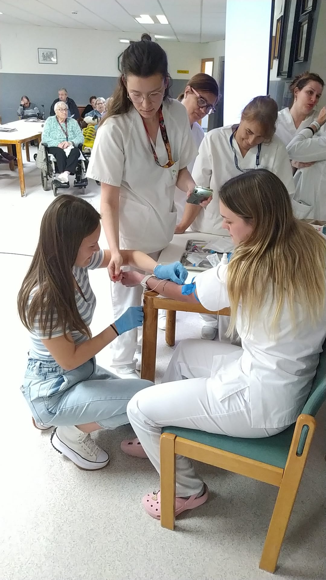Aprendiendo a medir la tensión y sacar sangre en la residencia de Grado 1º Bachillerato