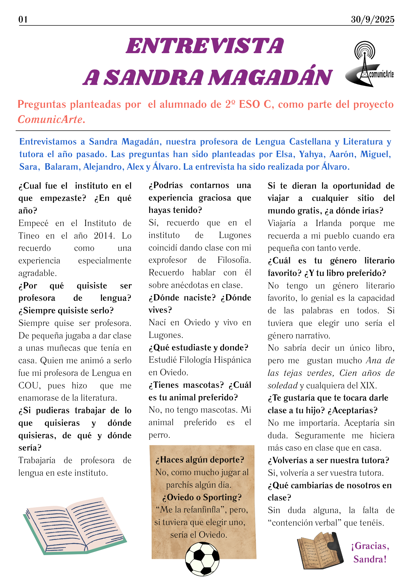 Este grupo ha realizado la entrevista a su profesora de Lengua, Sandra. ¡Ha quedado de maravilla! ¡Muchas gracias, Sandra!