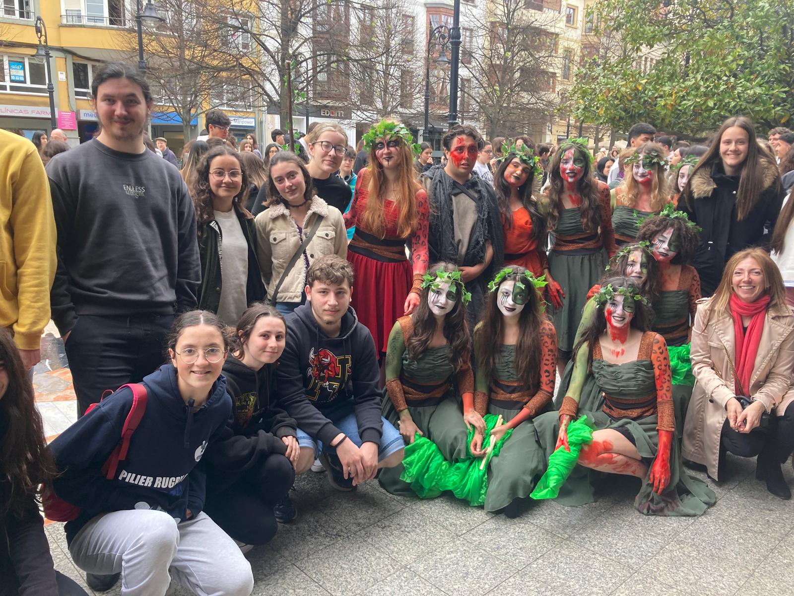 El pasado martes. 16 de abril, los alumnos de Latín, Griego, Literatura Universal y Taller de Teatro de 4ESO y Bachillerato han asistido en Gijón al Festival Juvenil de Teatro Grecolatino, a la representación de las Bacantes de Eurípides; se han fotografiado con algunas de las bacantes de la Compañía de Teatro Noite Bohemia que actuaron en la obra.